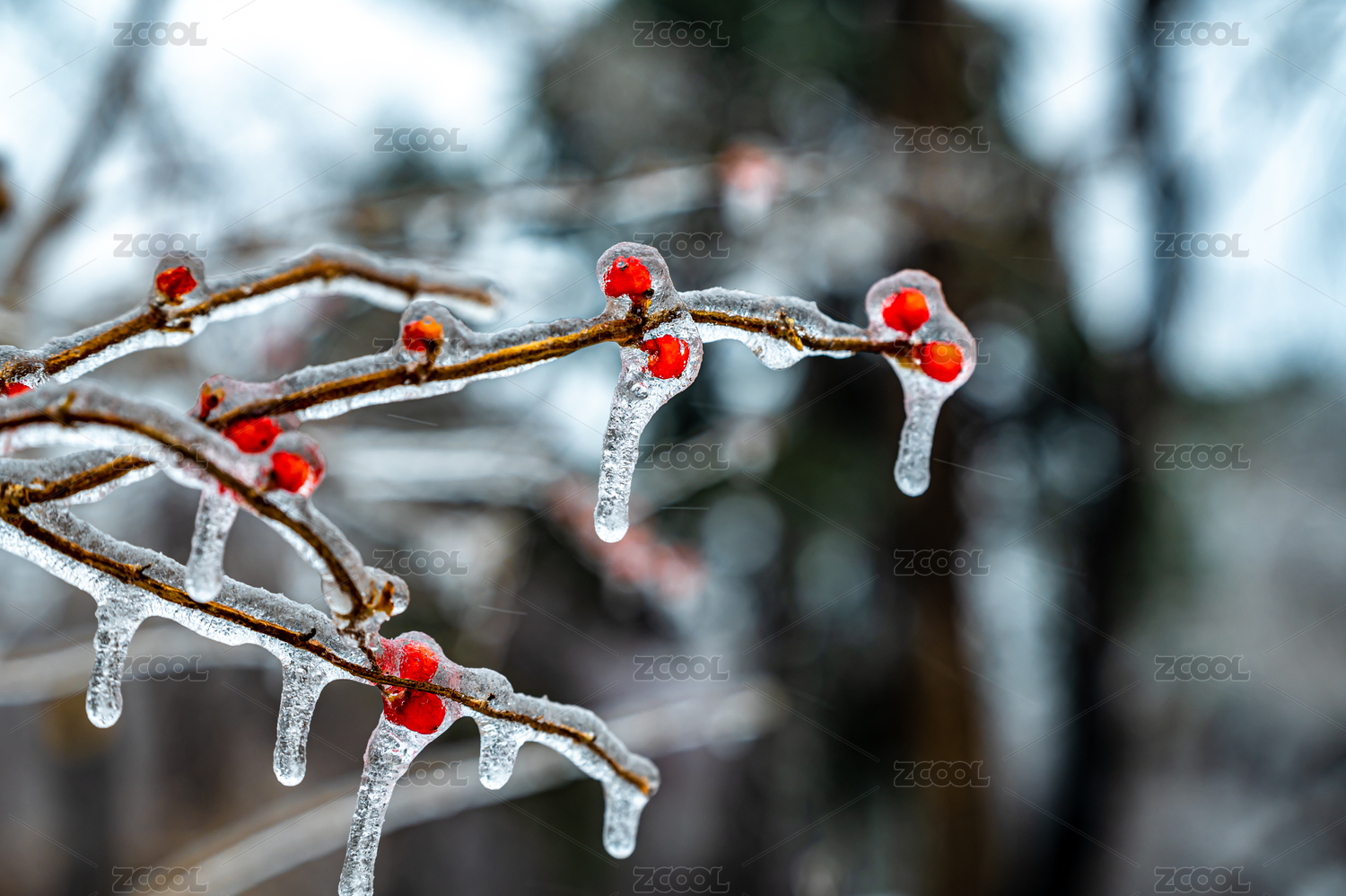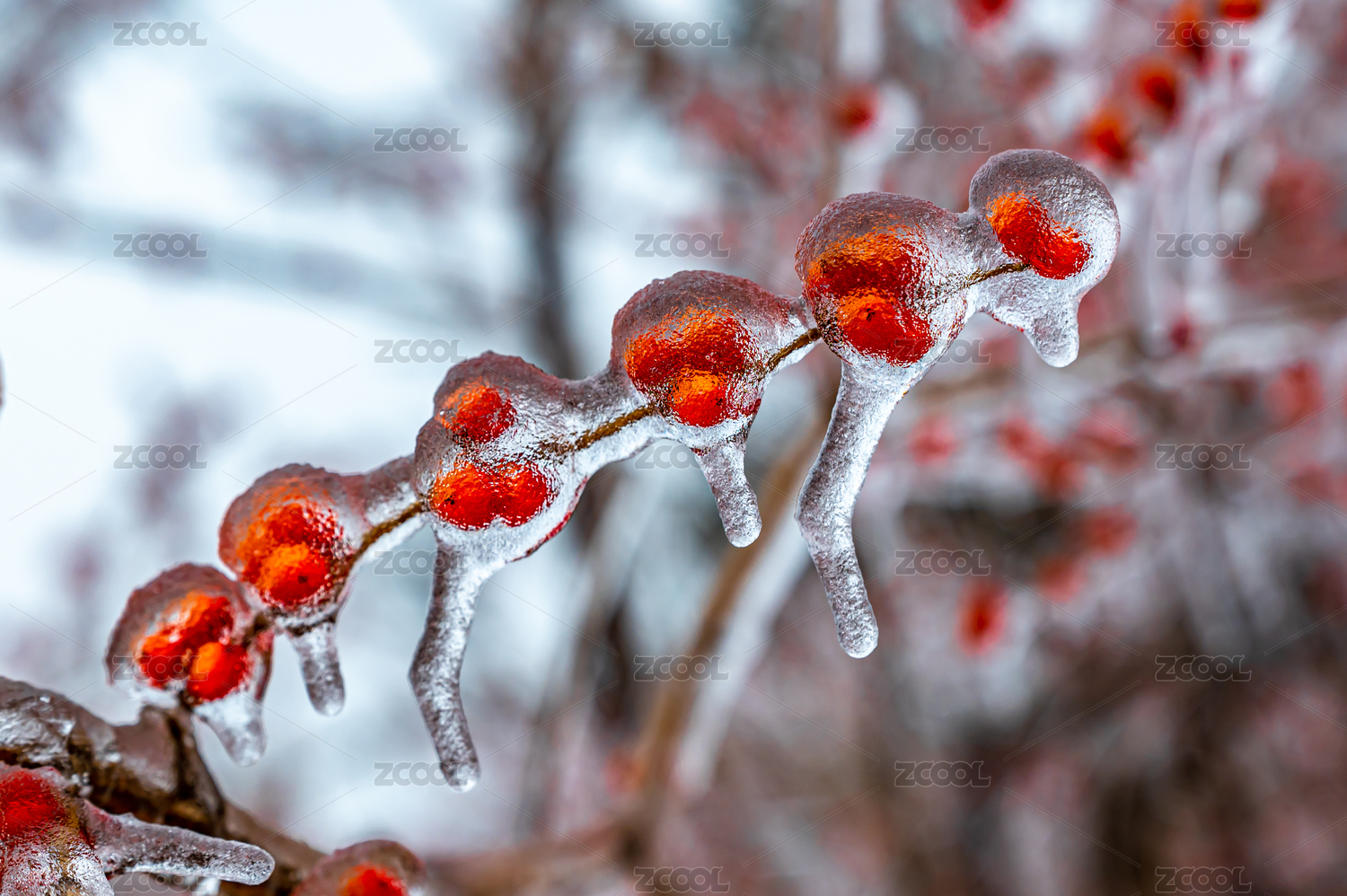 雨雪過(guò)后在冰雪之中的紅色漿果