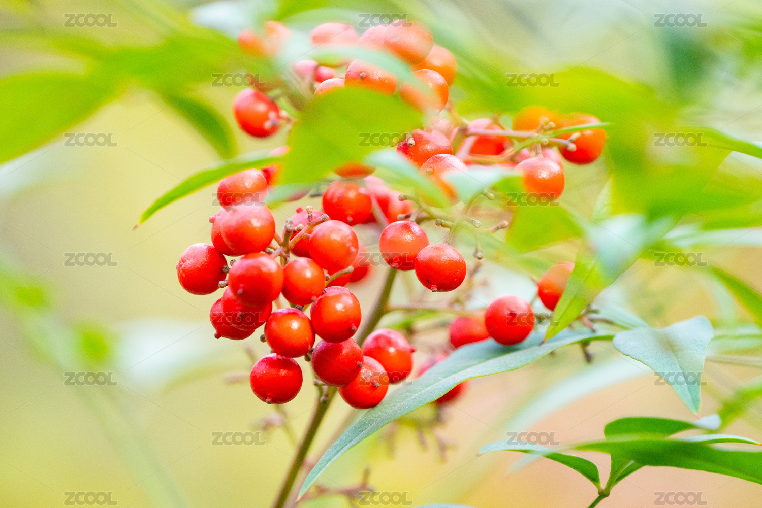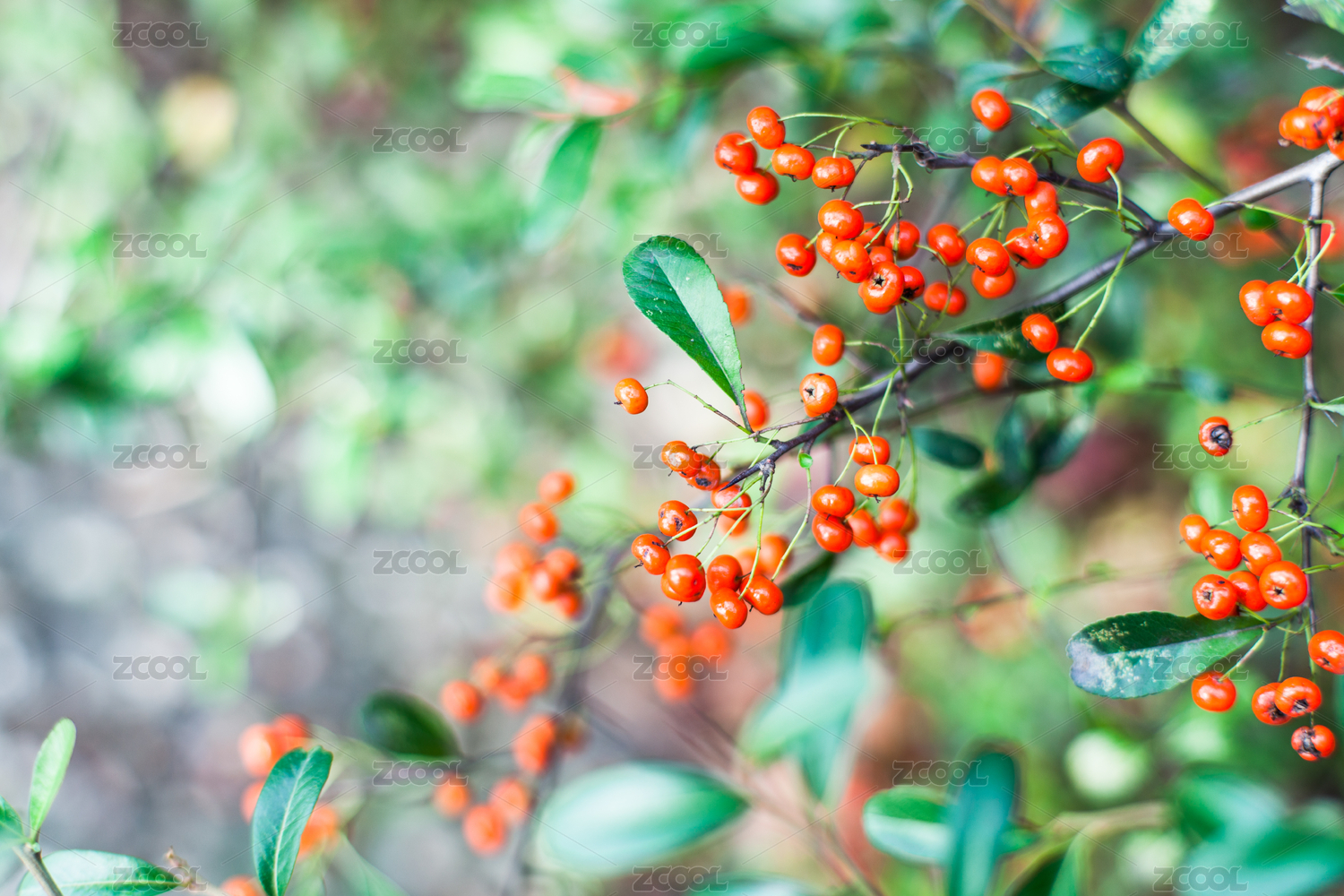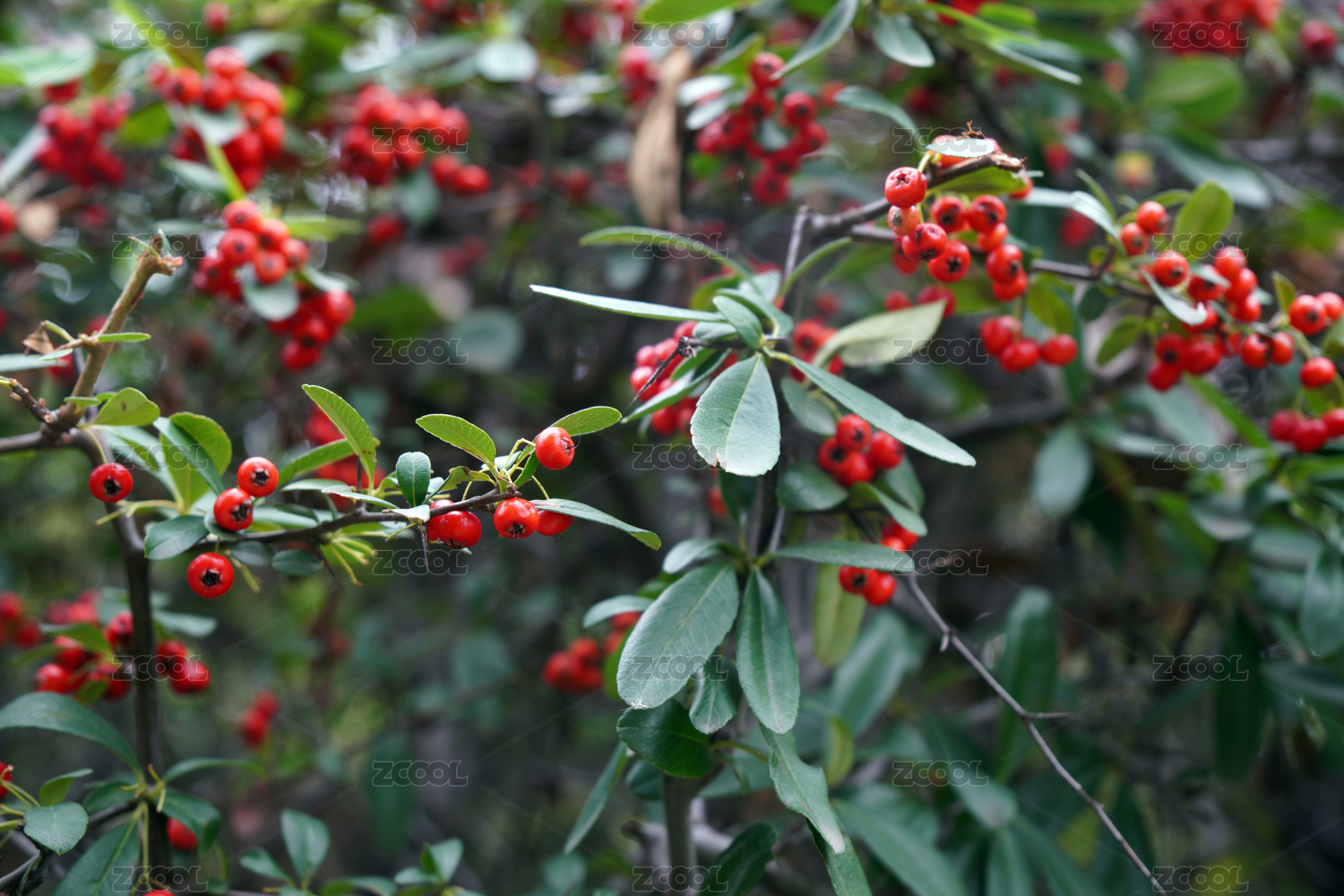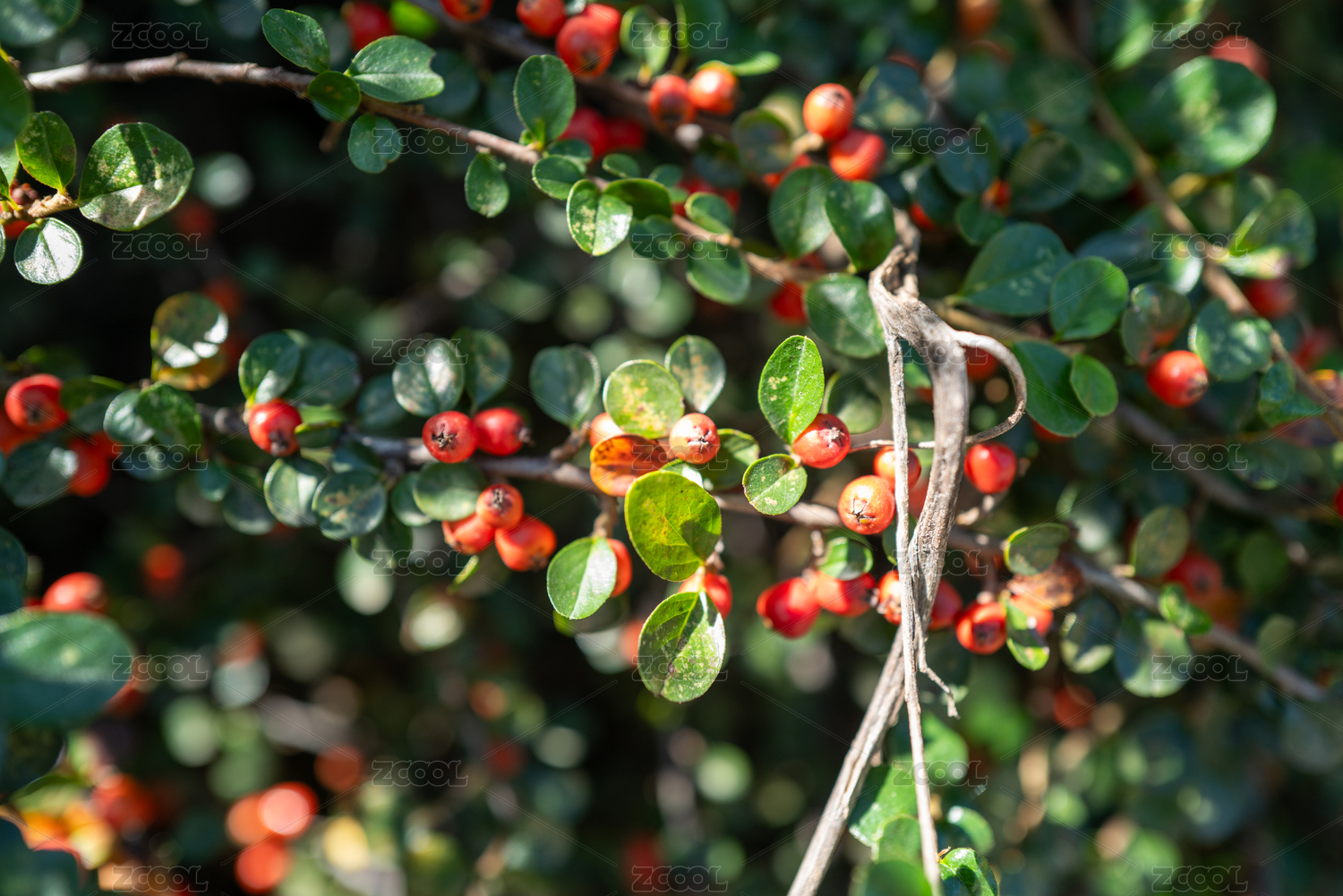 植物上生長(zhǎng)的漿果特寫(xiě)鏡頭——平枝栒子