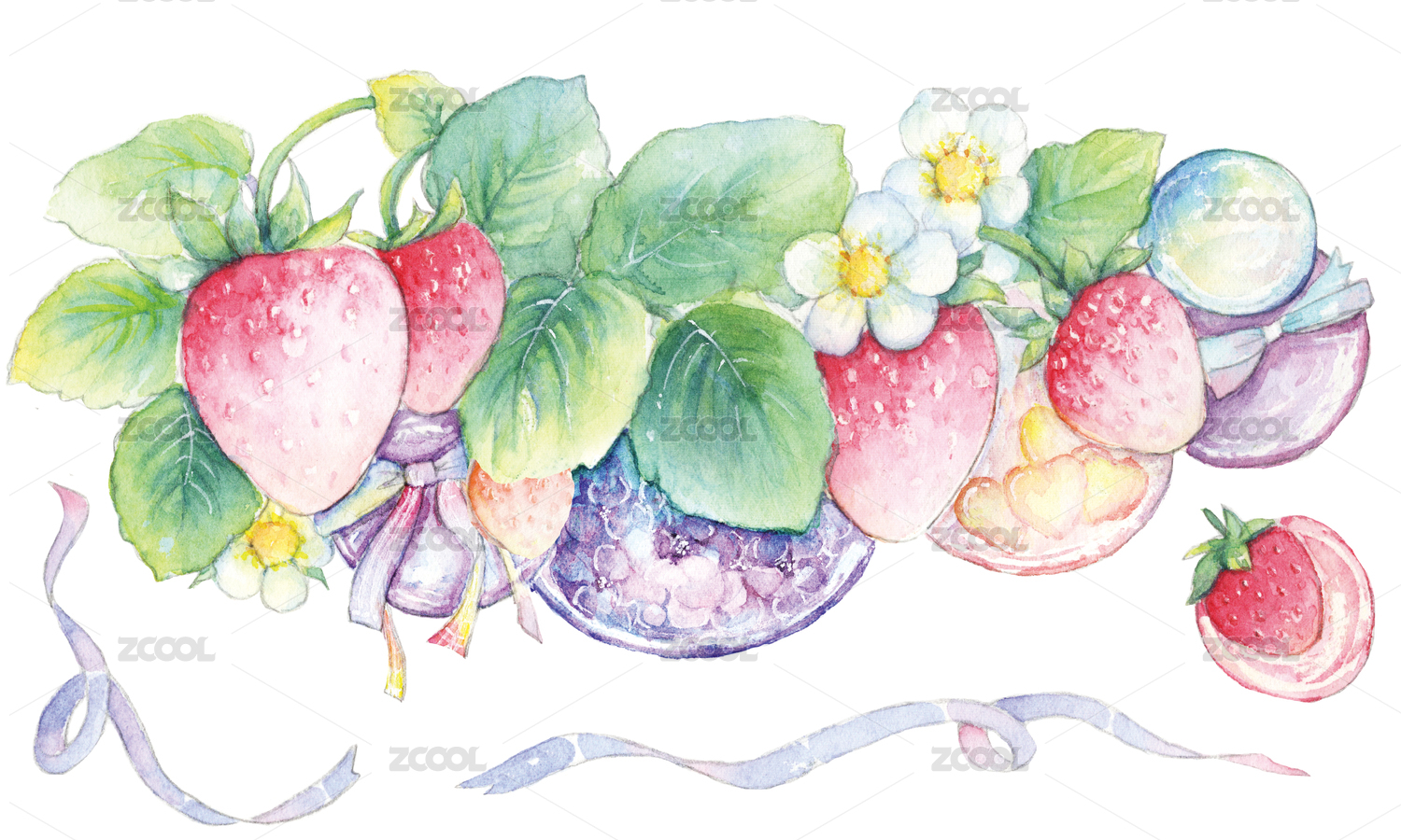 清新自然新鮮草莓水果漿果植物裝飾插畫(huà)