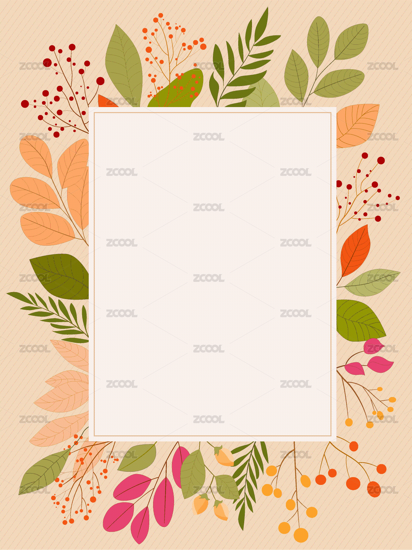 卡通秋天落葉收集漿果各類(lèi)葉子插畫(huà)背景邊框