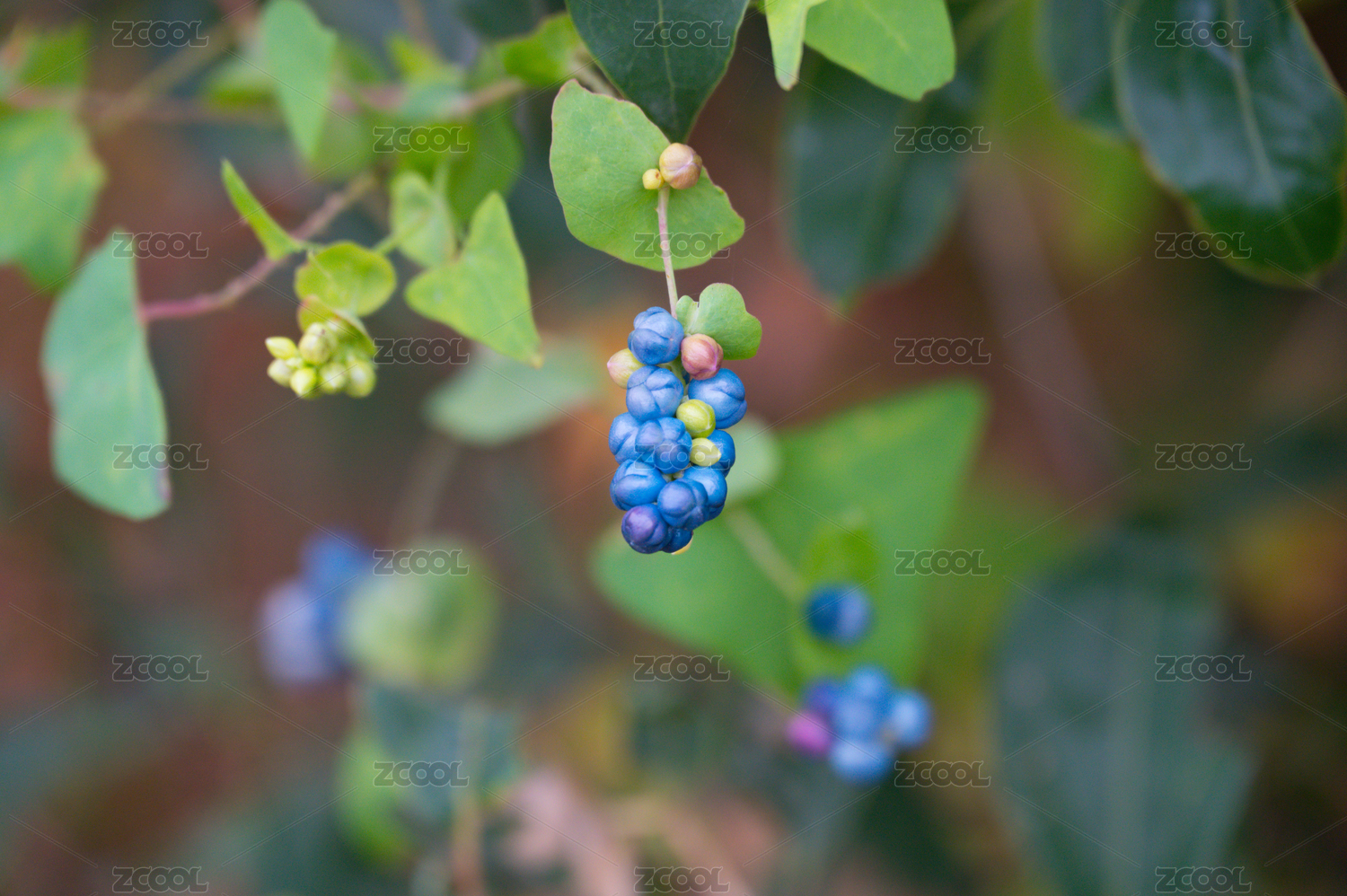 中國(guó)浙江寧波余姚牟山湖湖邊的藍(lán)色漿果