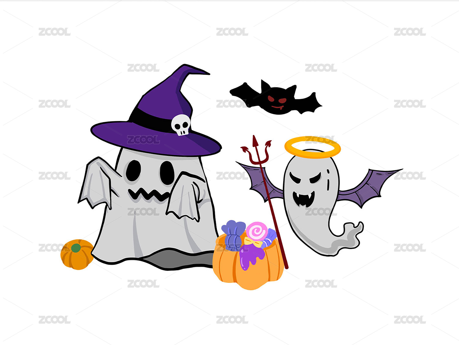 萬圣節(jié)女巫小魔女的包水彩手繪