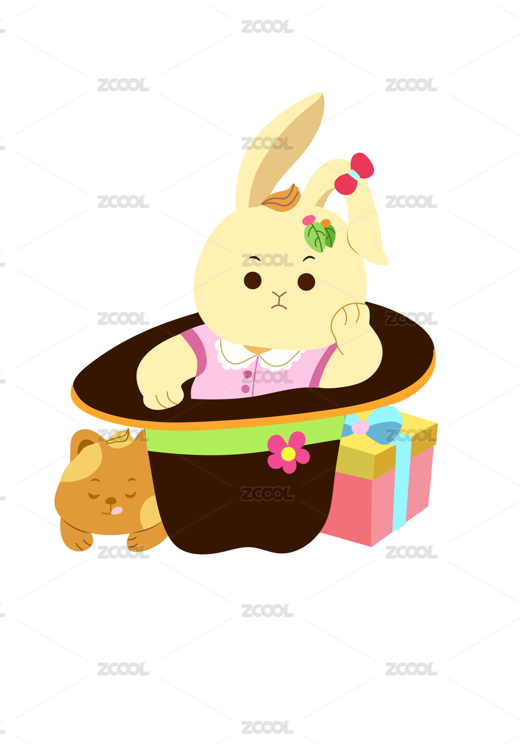 粉色的小老鼠過生日帶生日帽拿著魔法棒