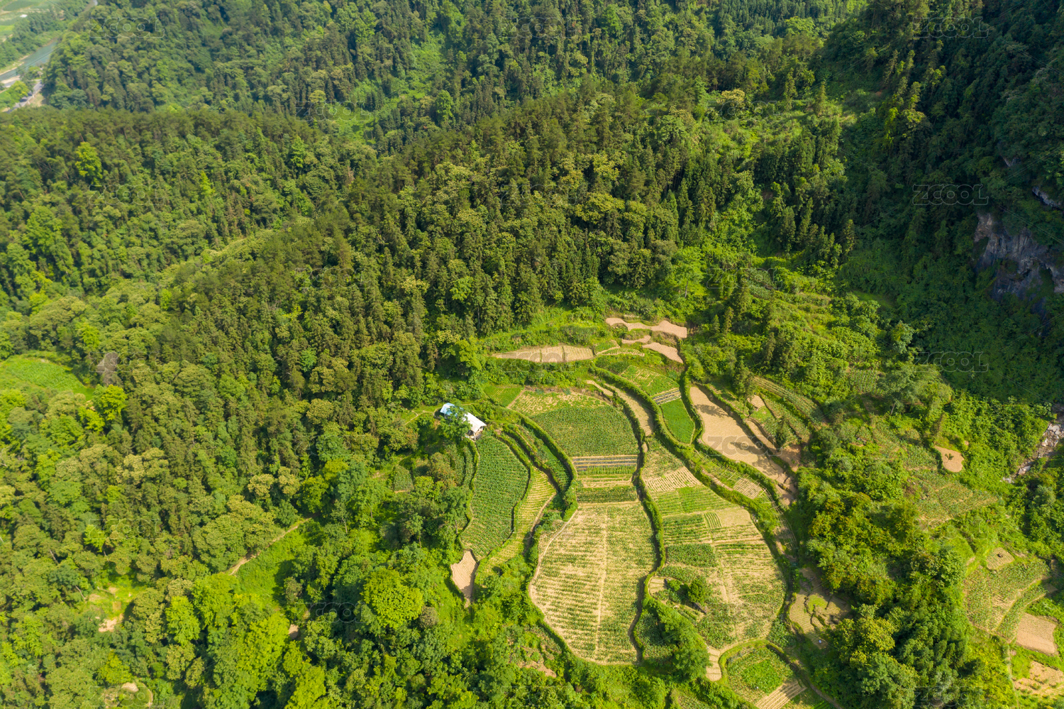 湘西山林中樹木環(huán)繞的農(nóng)地
