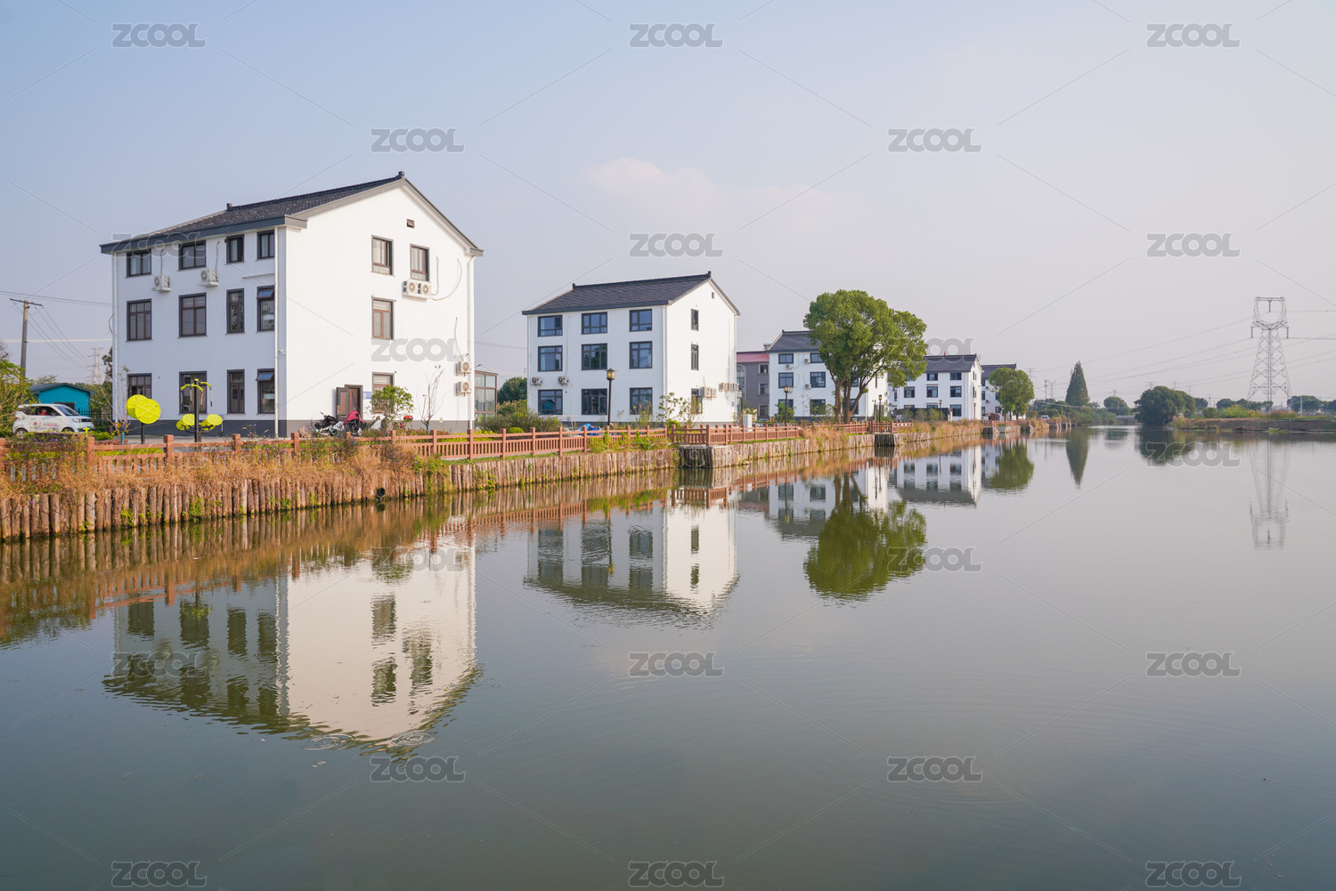 日落俯視上海青浦一個鄉(xiāng)村設(shè)施農(nóng)地全景