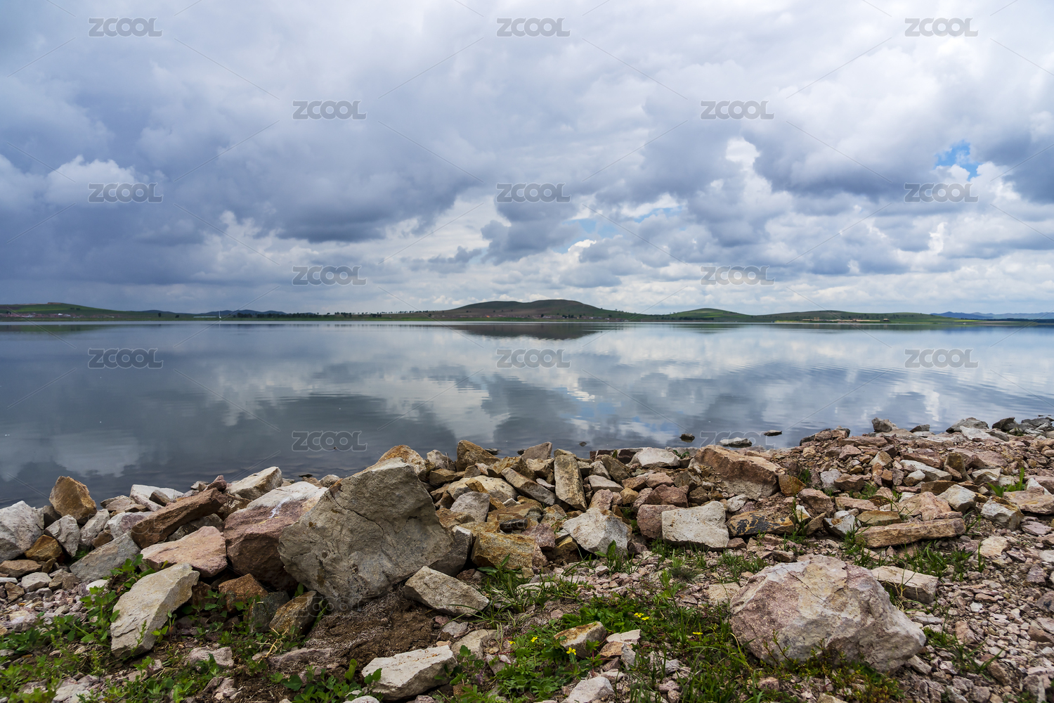 藍天白云下河北省沽源閃電河風光