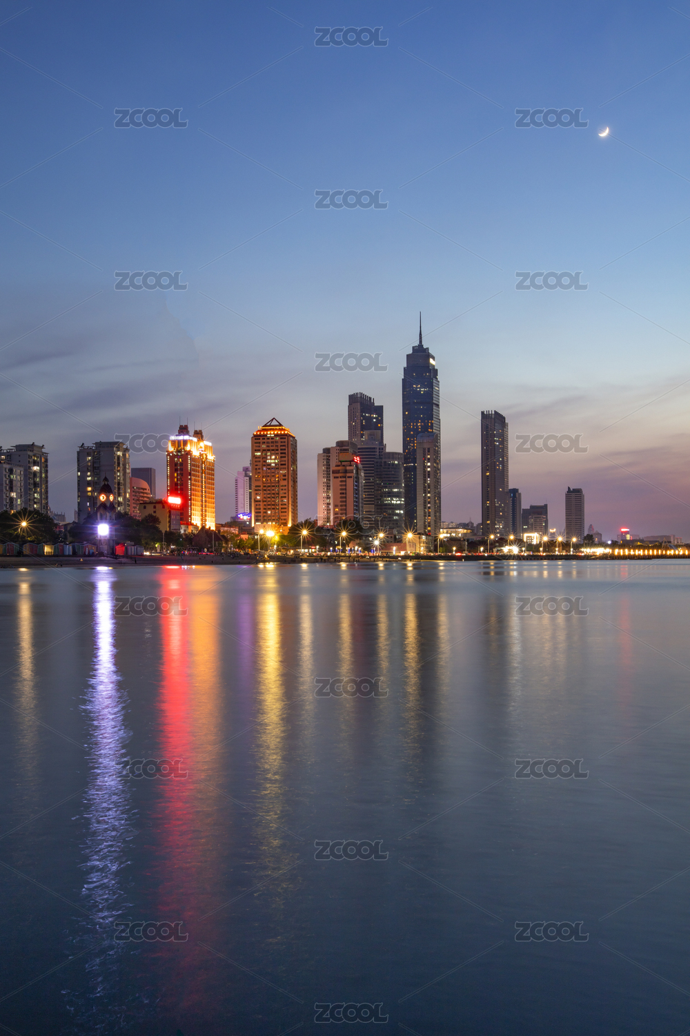 夜晚月亮下寧?kù)o的城市夜色風(fēng)景