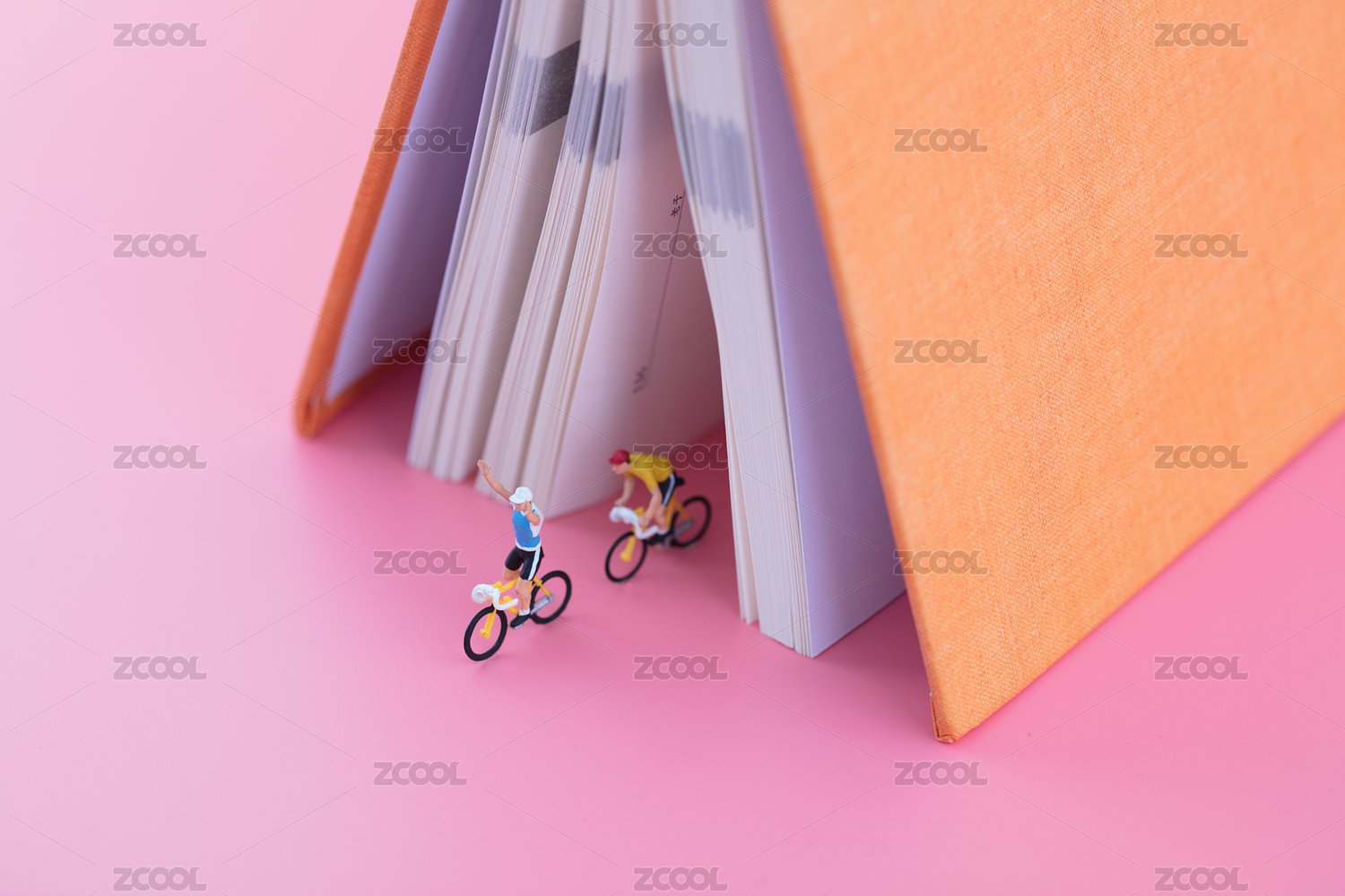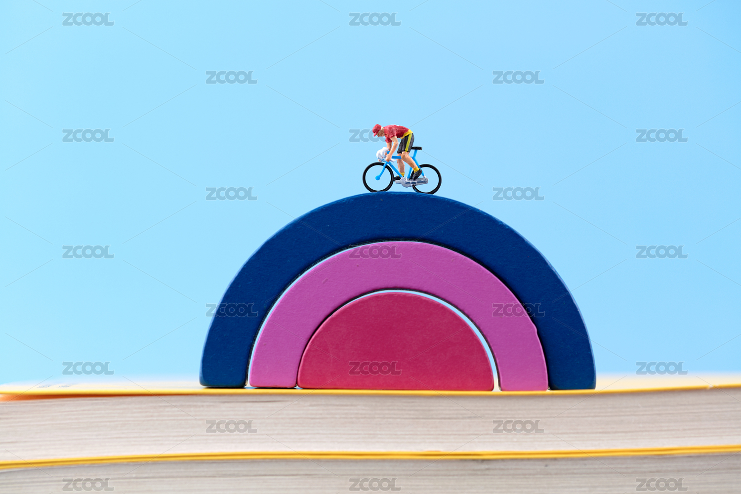 微縮創(chuàng)意騎車行駛在彩虹橋上