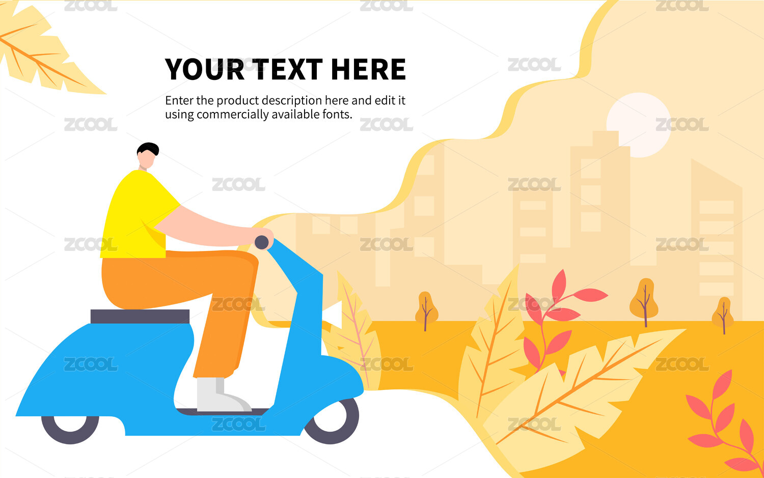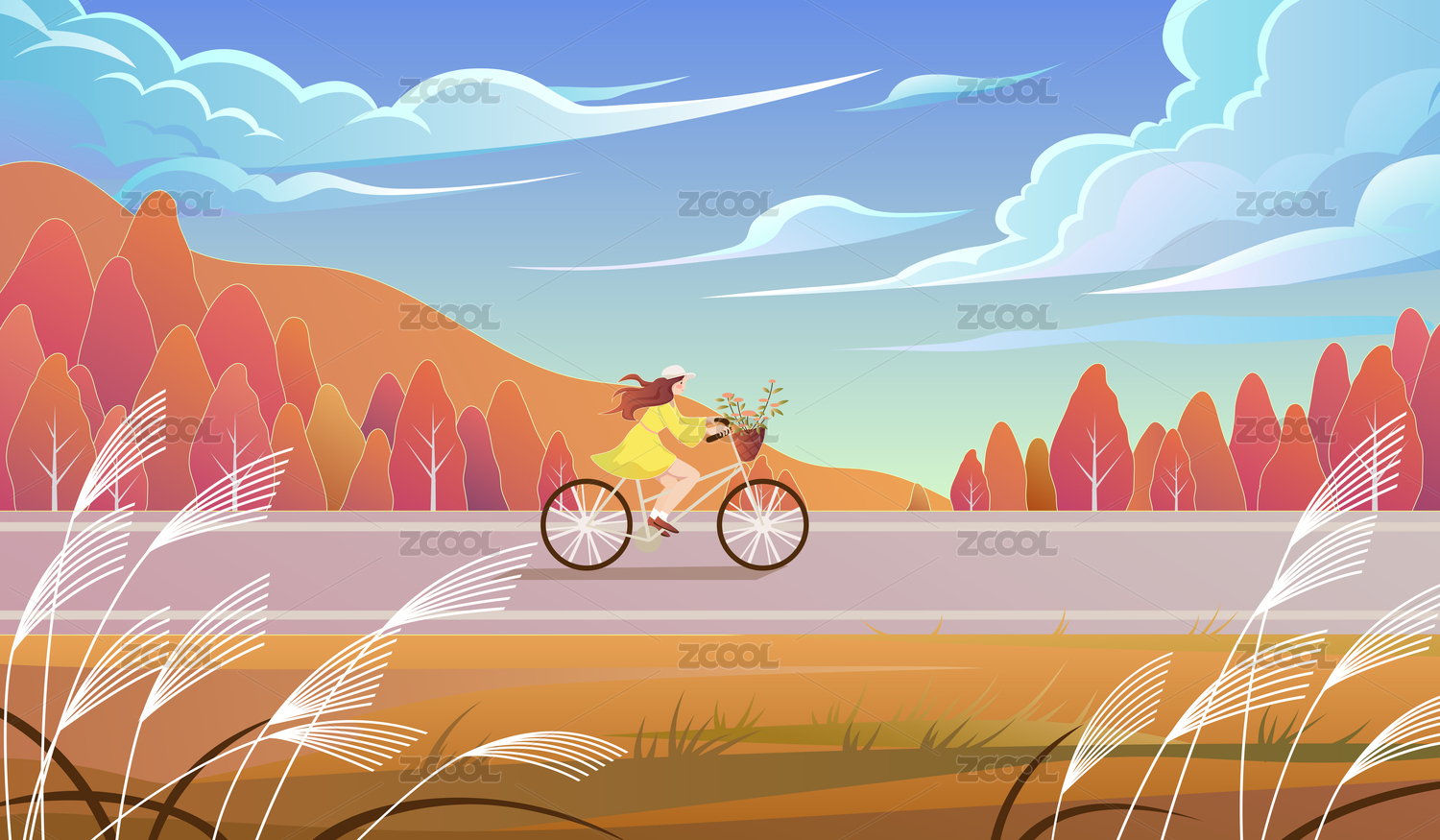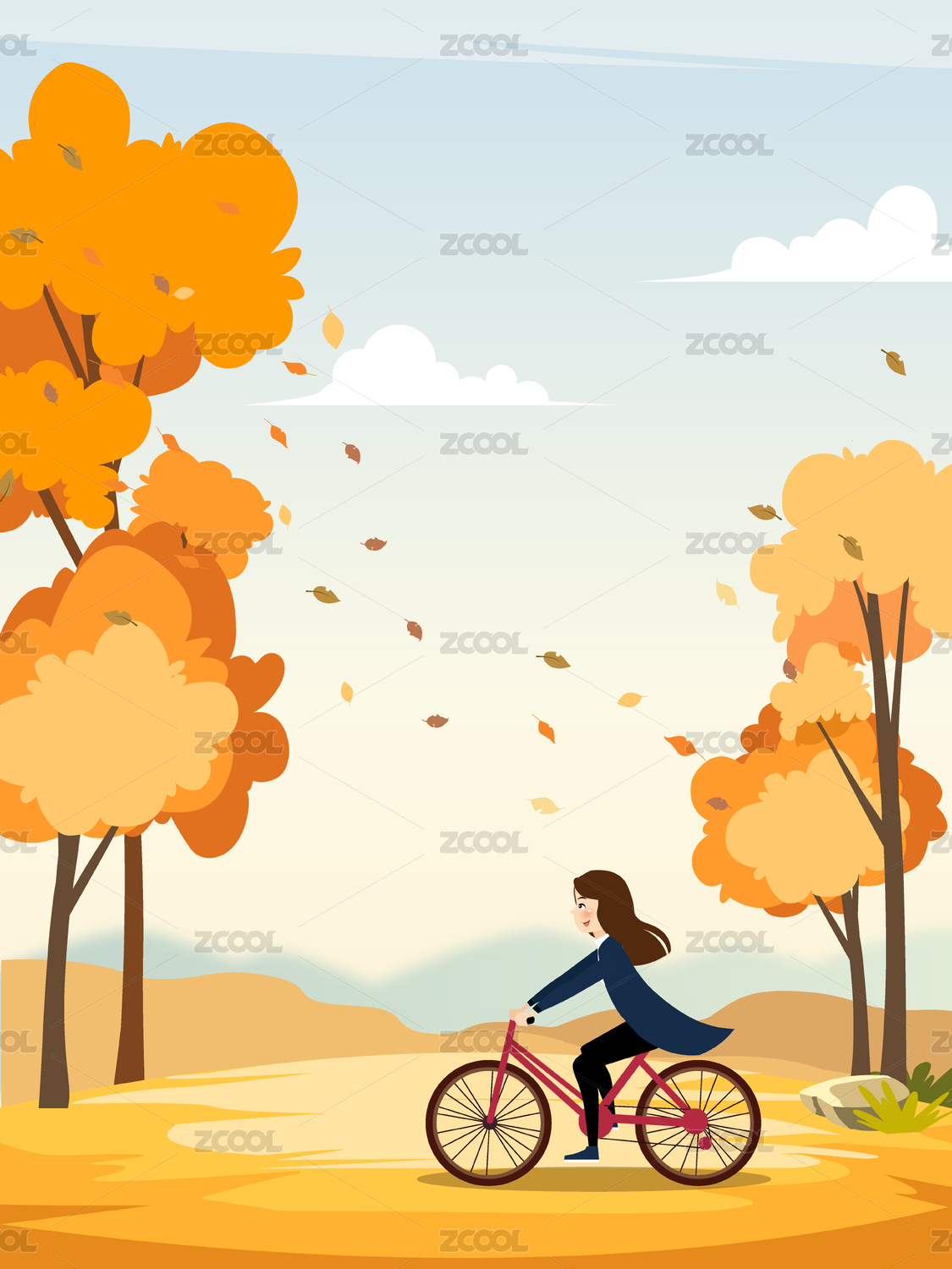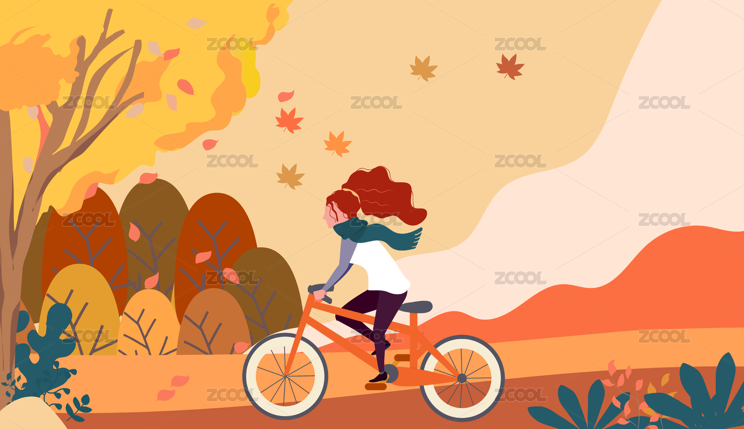 秋日風(fēng)景戶外運動騎車矢量橫版無字