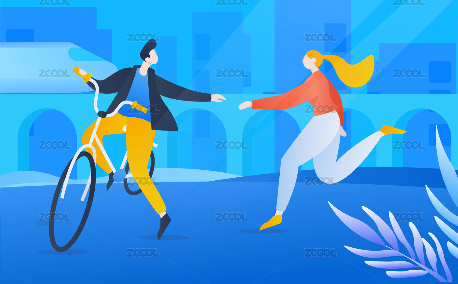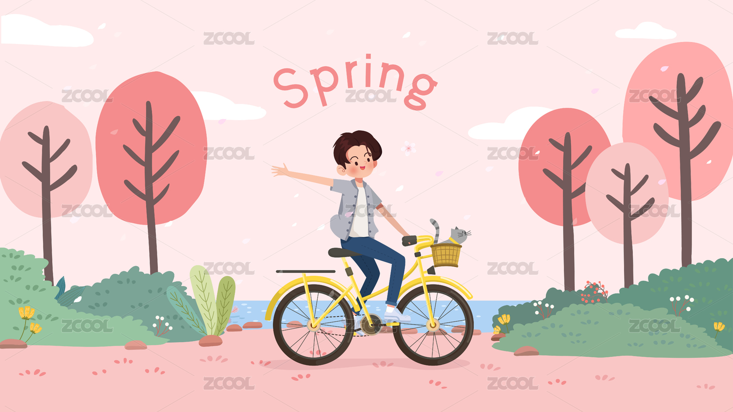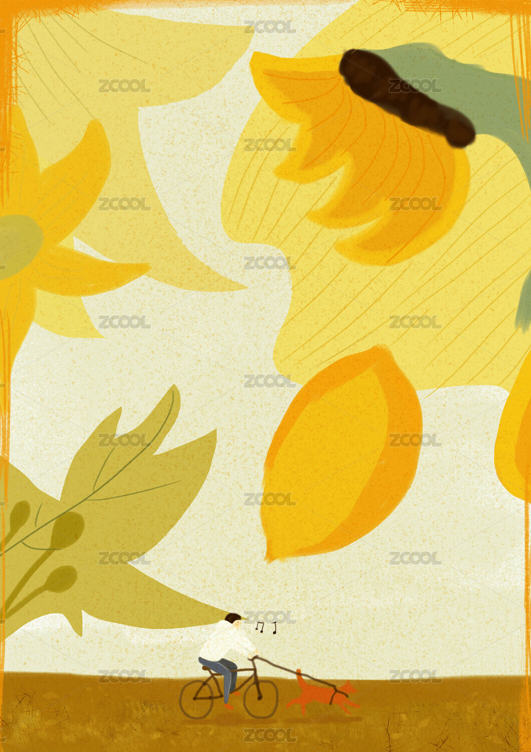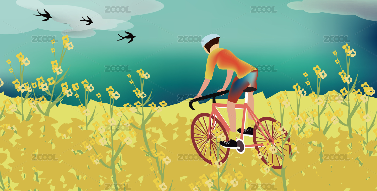 秋日風(fēng)景戶外運動騎車矢量橫版無字