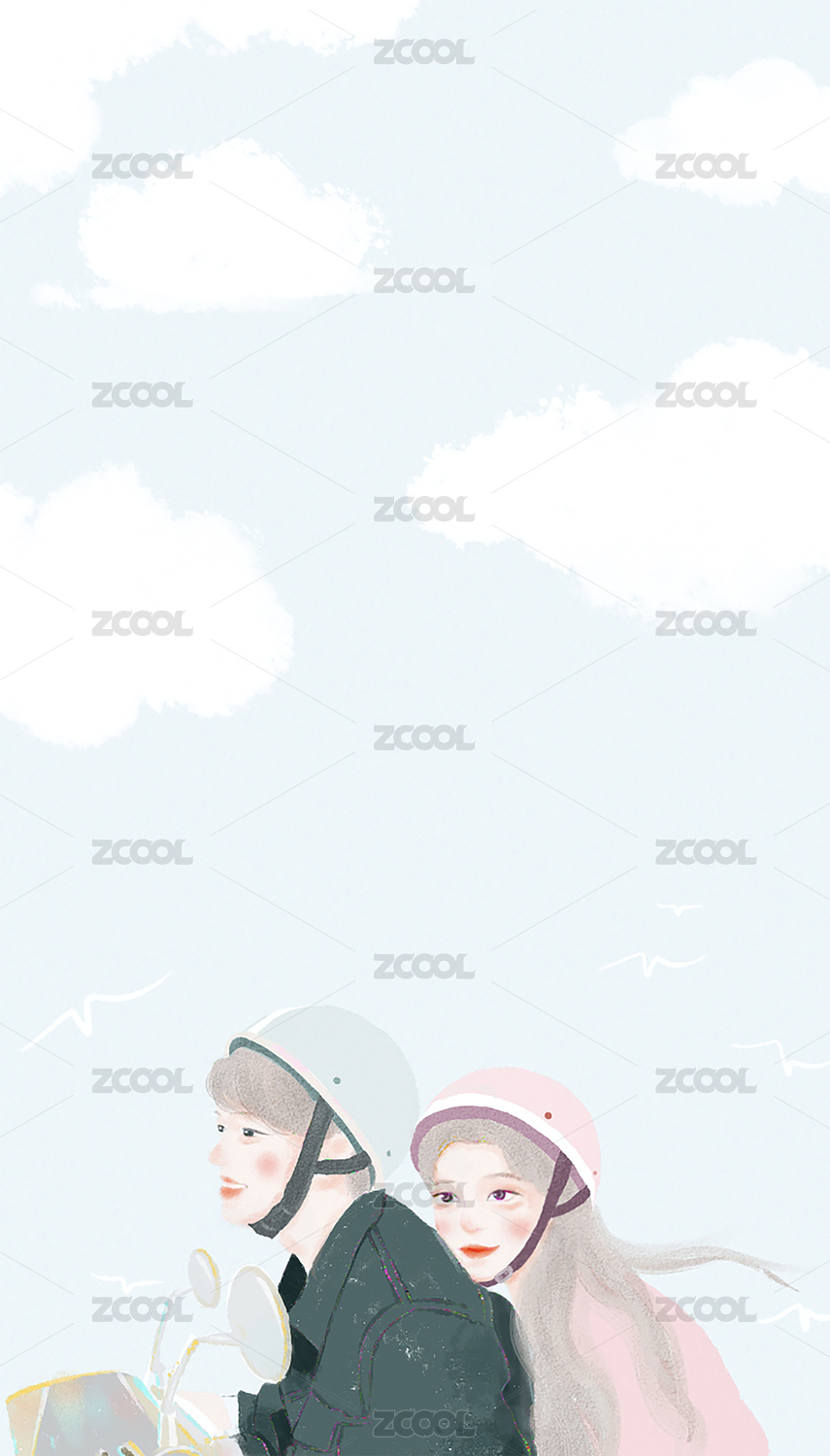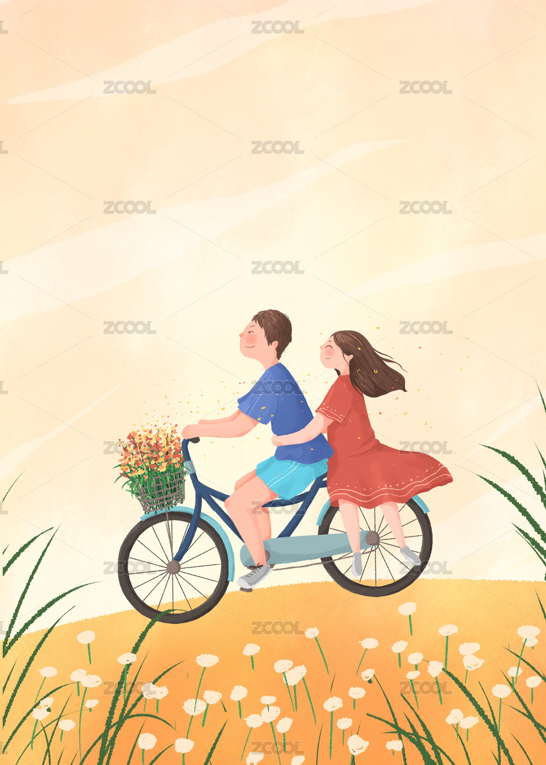 情人節(jié)海報節(jié)日情侶騎車約會七夕愛情插畫