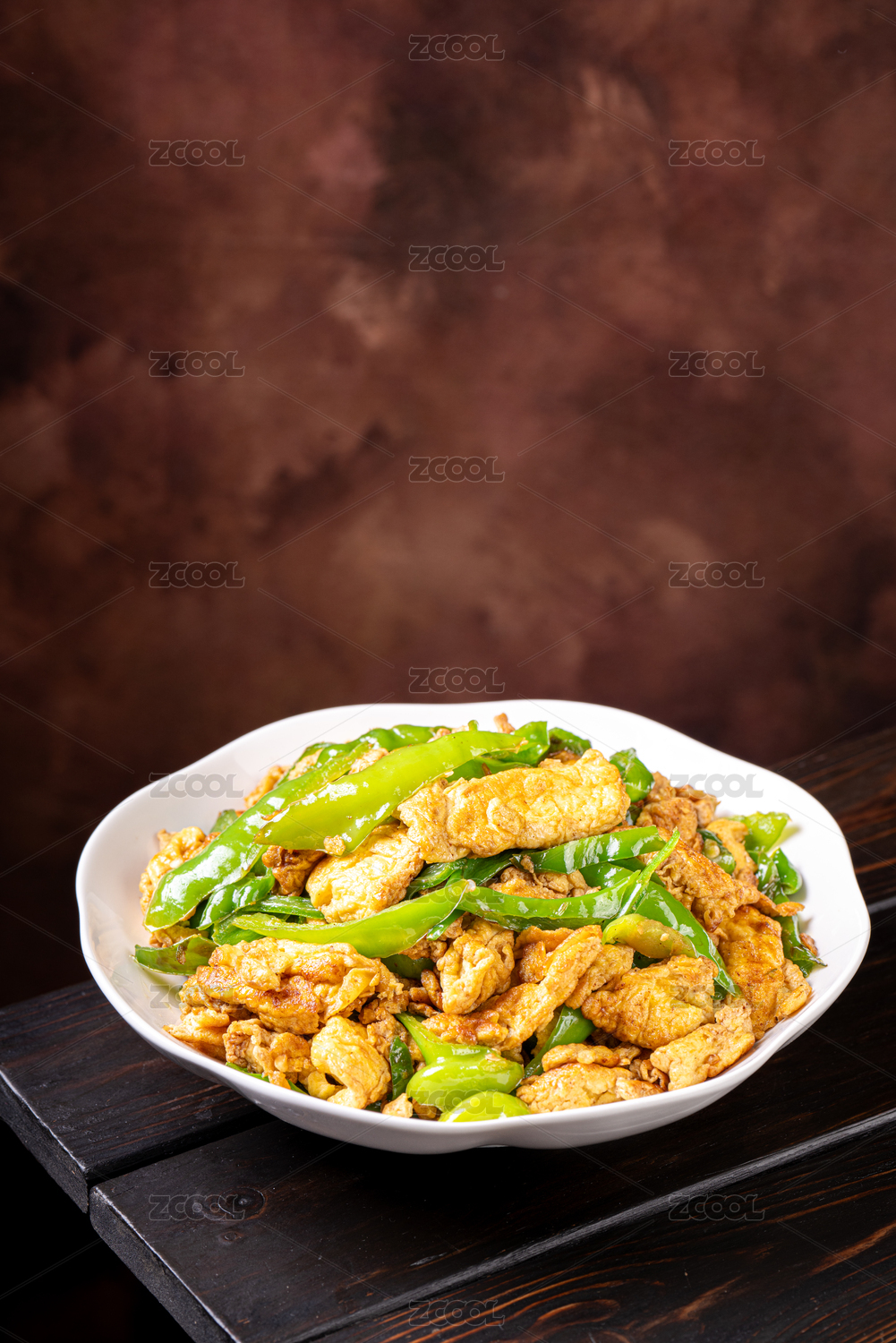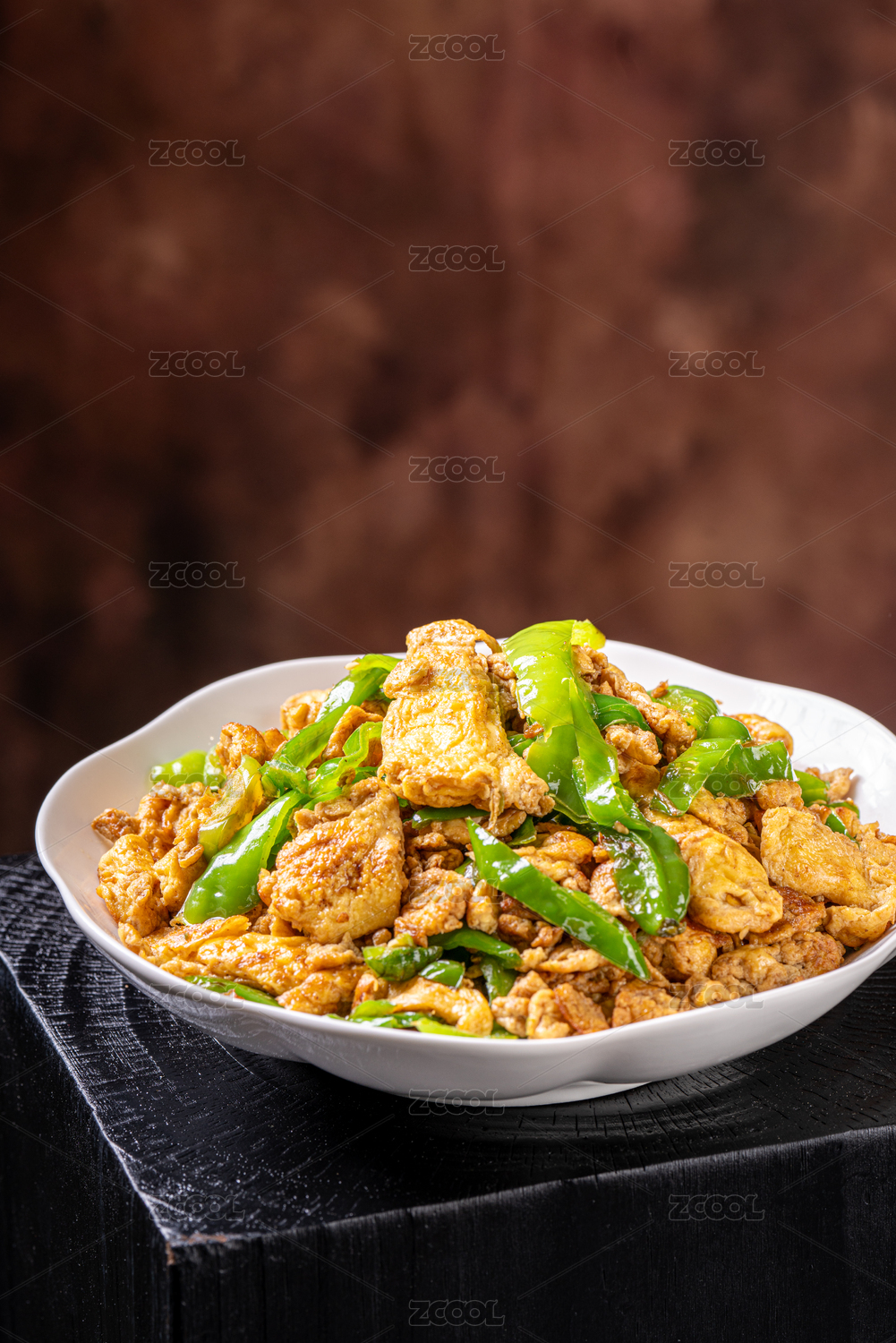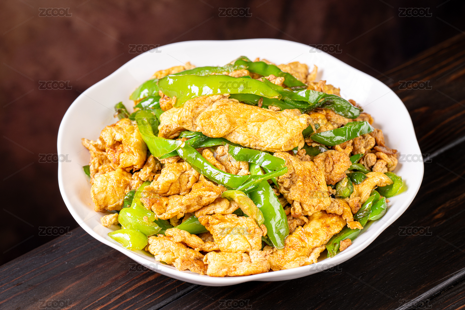 香辣青椒雞蛋炒肉片雞蛋和米飯