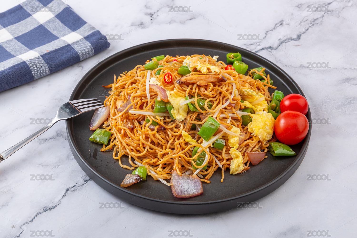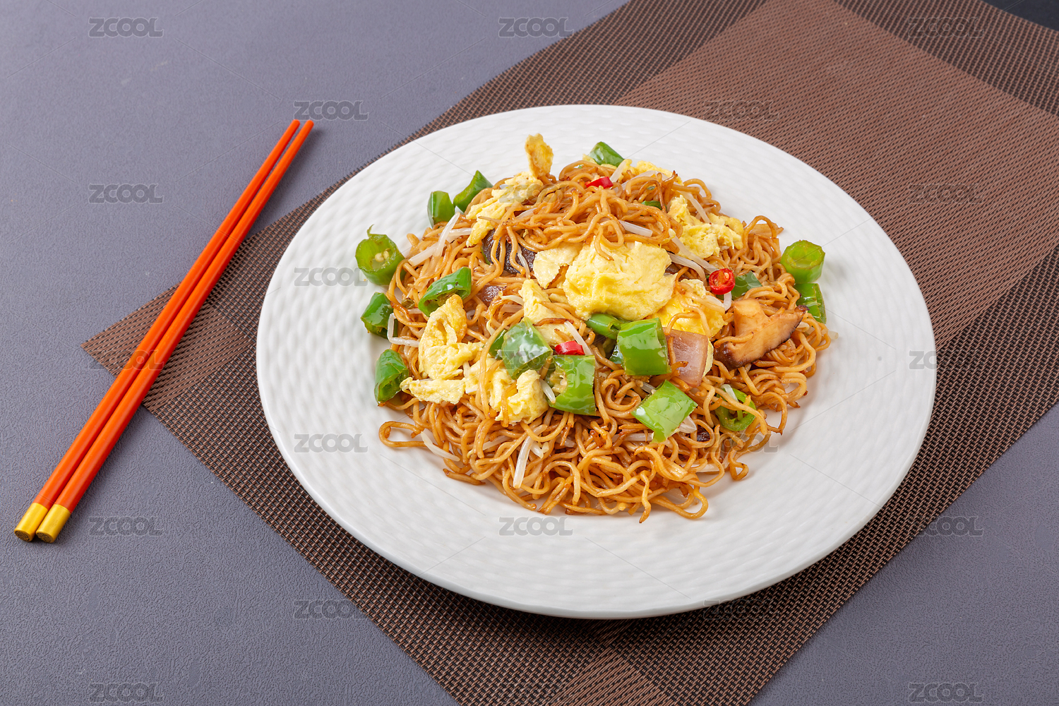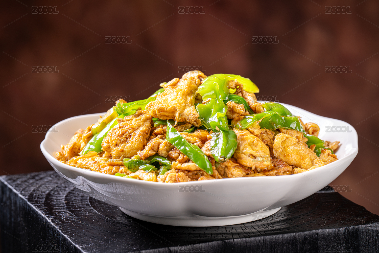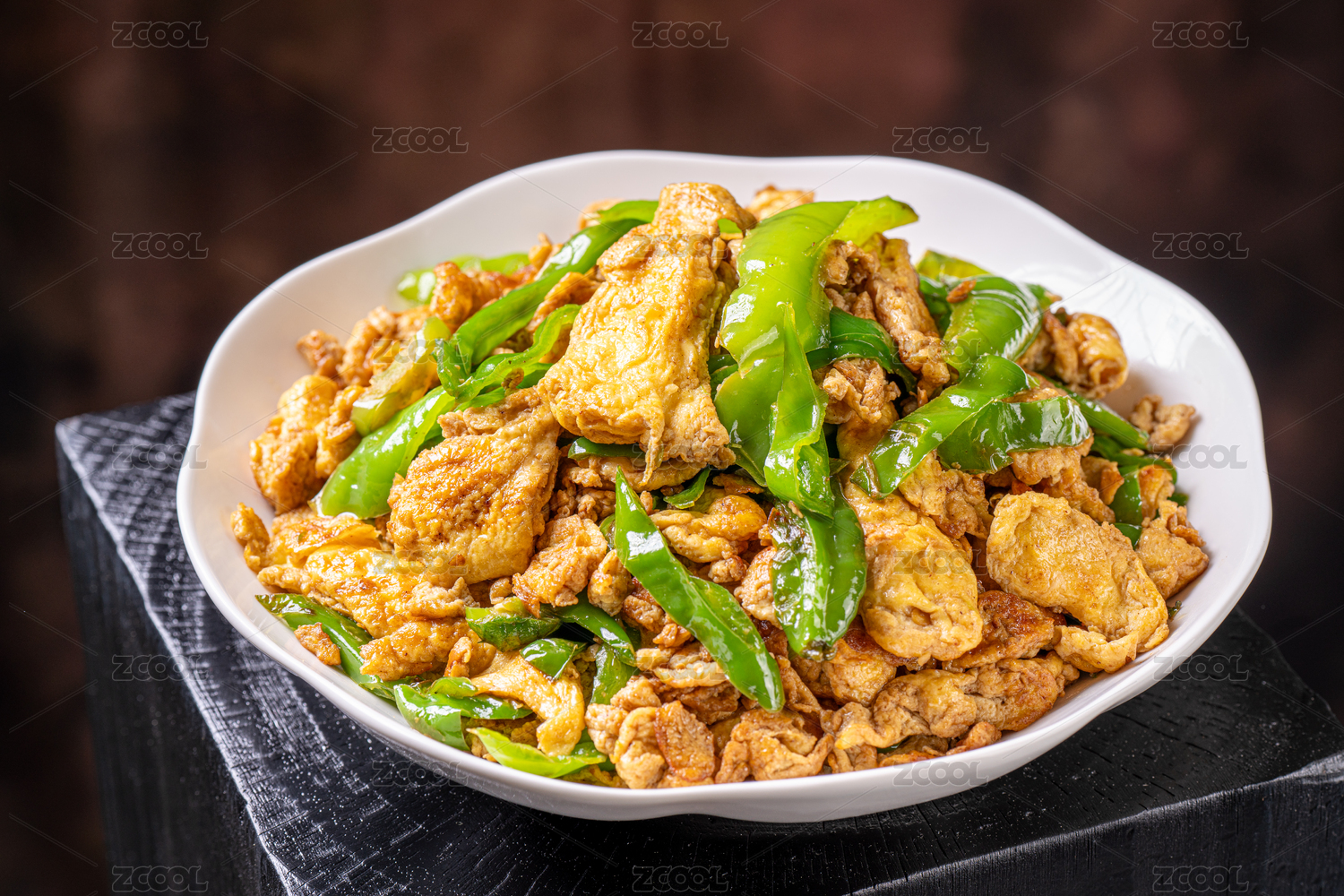 香辣青椒雞蛋炒肉片雞蛋和米飯