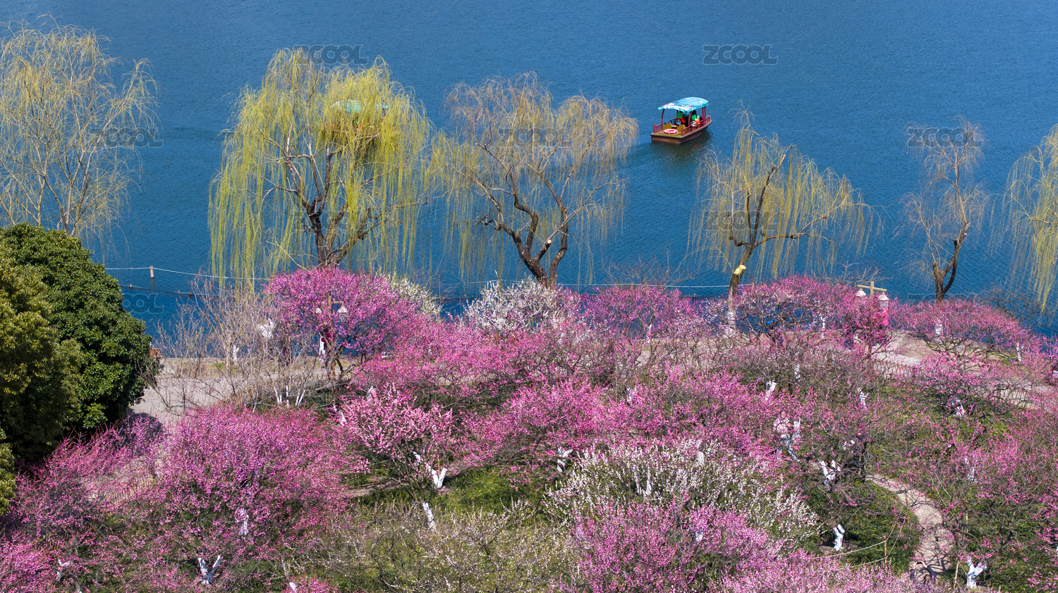 杭州西湖孤山公園梅花盛開航拍