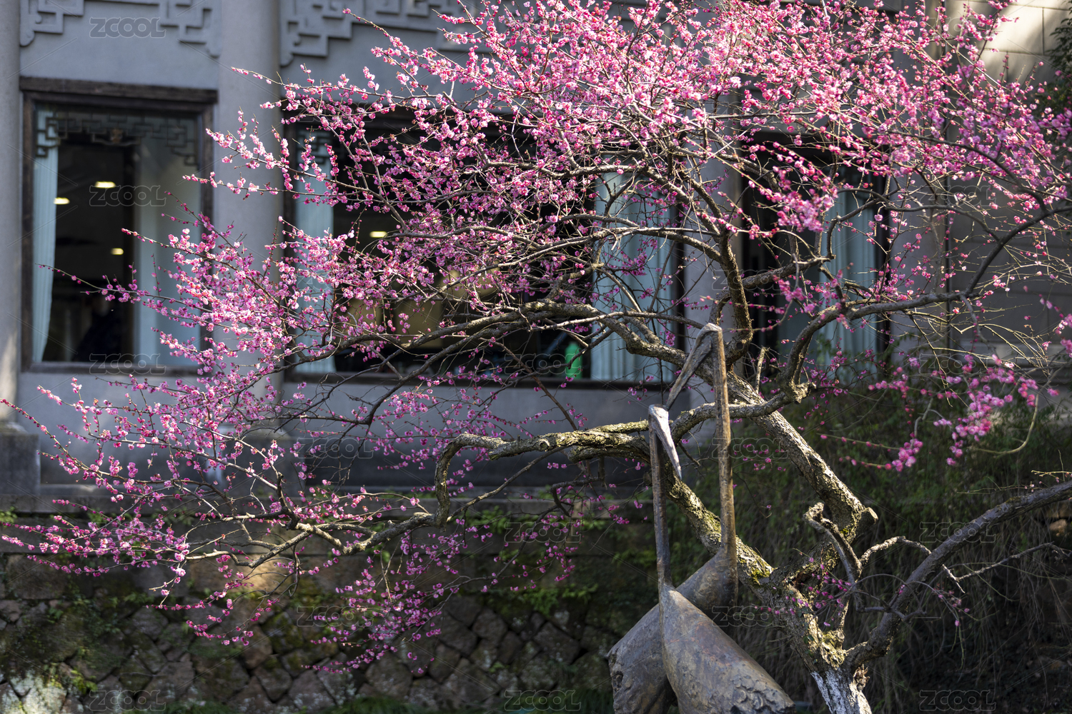 中國杭州孤山公園的放鶴亭梅花盛開