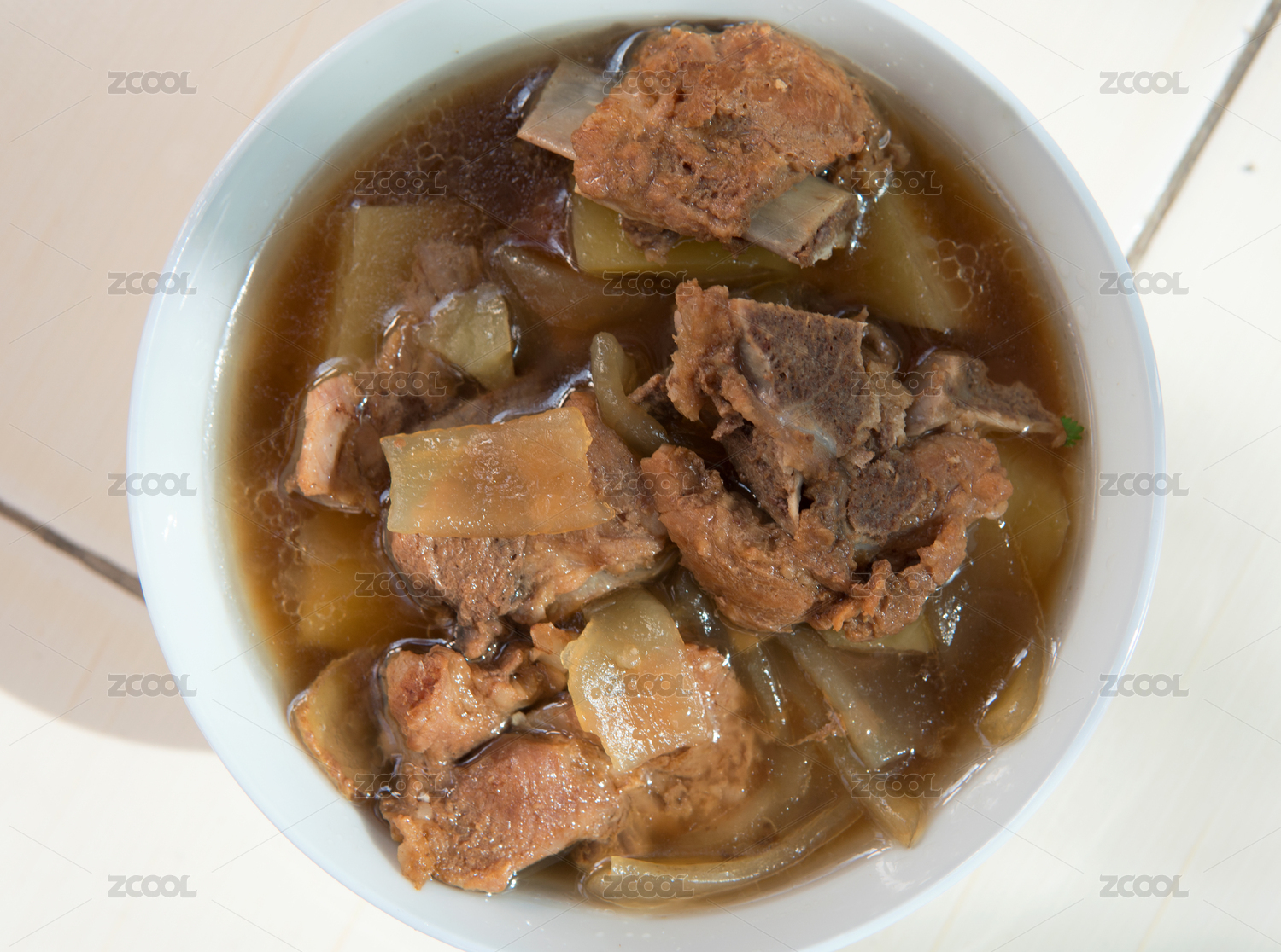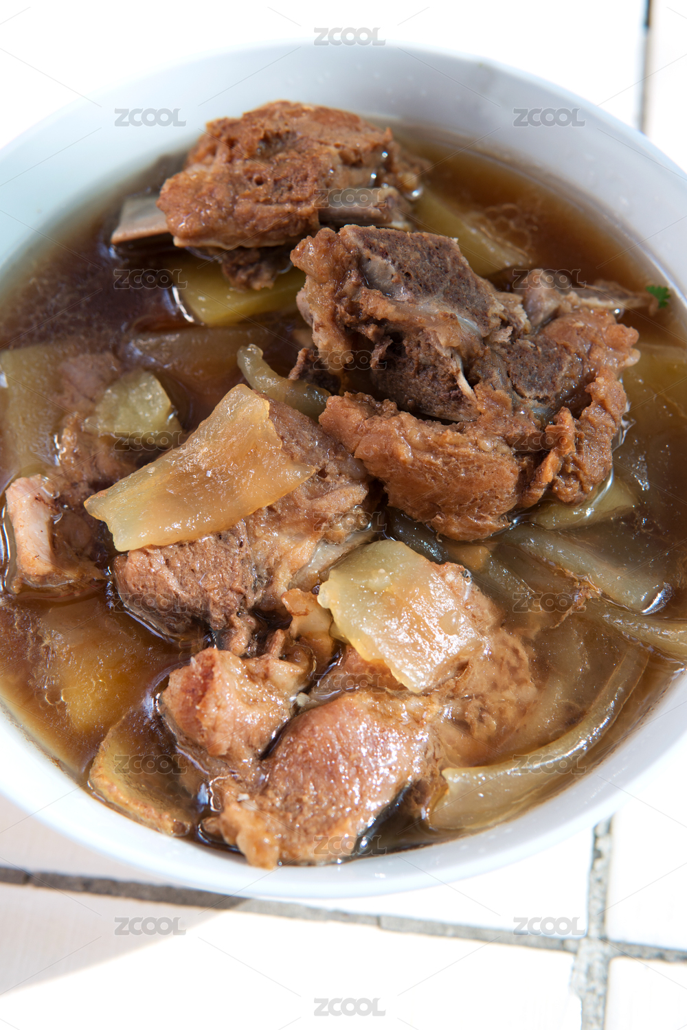一碗燉熟的排骨寬粉條