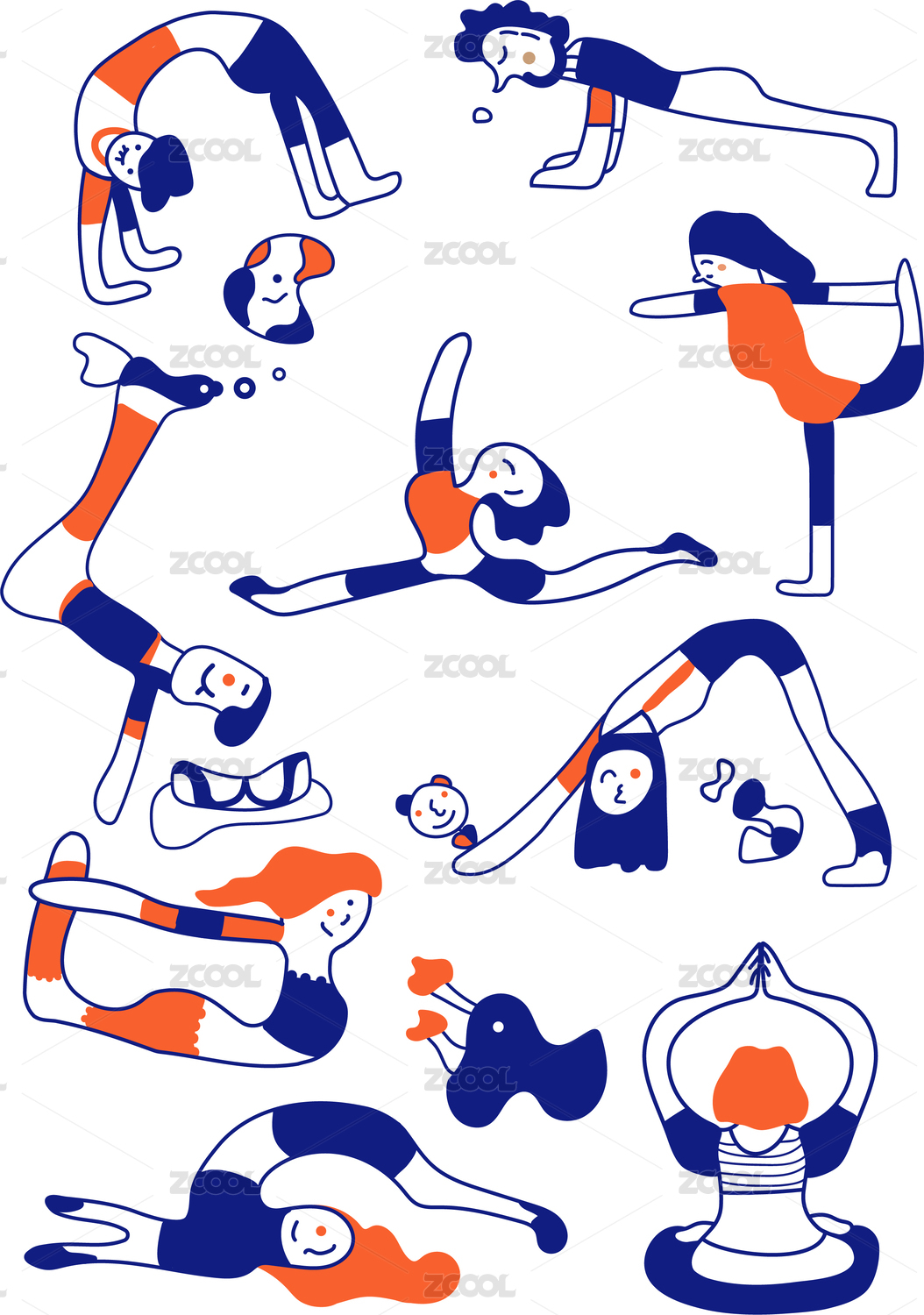 插畫扁平卡通可愛人物線條藍色創(chuàng)意圖案動作