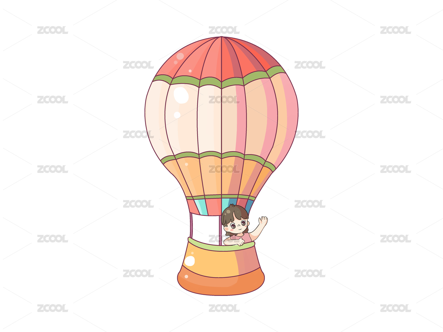 橘色溫馨可愛人物出游乘坐熱氣球