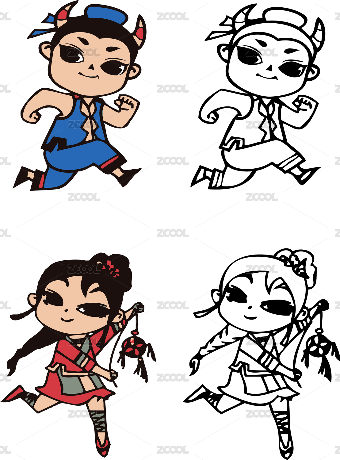 中國娃娃可愛人物品牌設(shè)計插畫