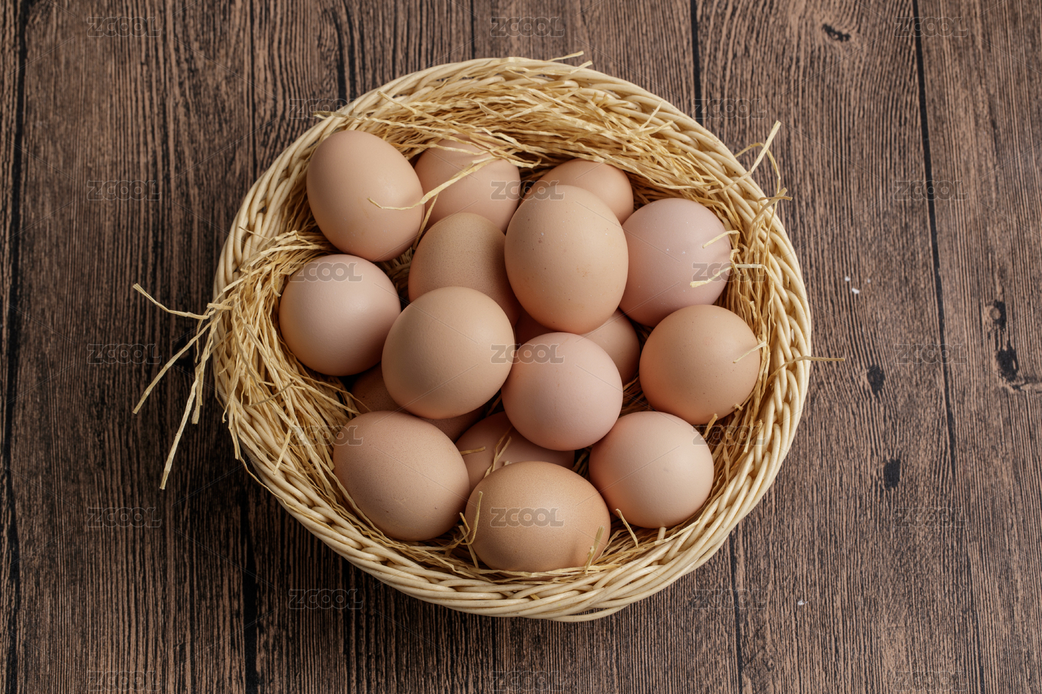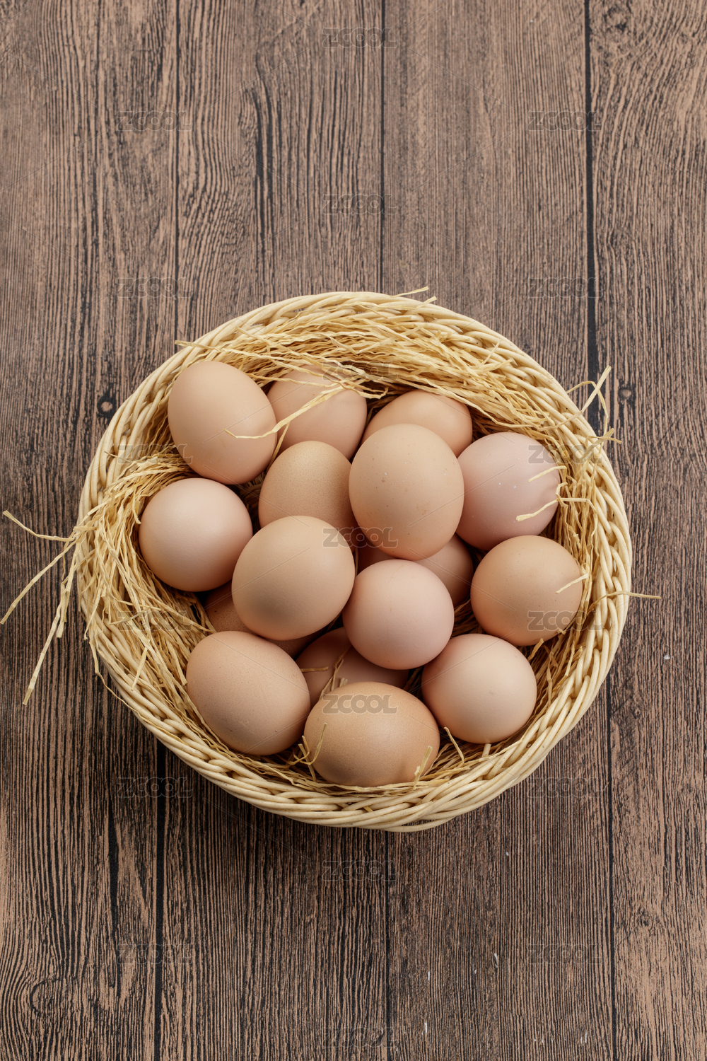 木質(zhì)底紋上的竹笸籮裝滿(mǎn)了美味的油雞蛋