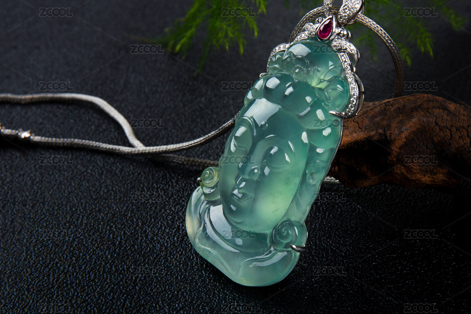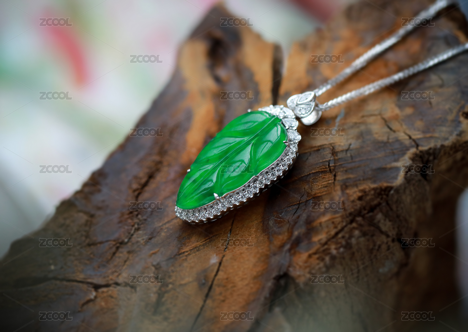 18K白金鑲嵌鉆石翡翠樹葉事業(yè)有成吊墜