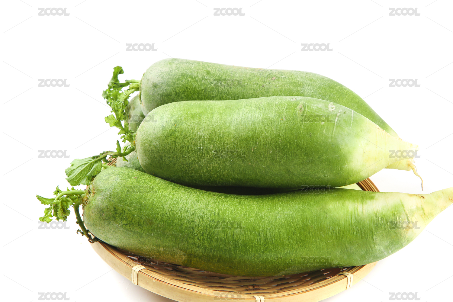 白底上放著一藍(lán)新鮮的翡翠青蘿卜
