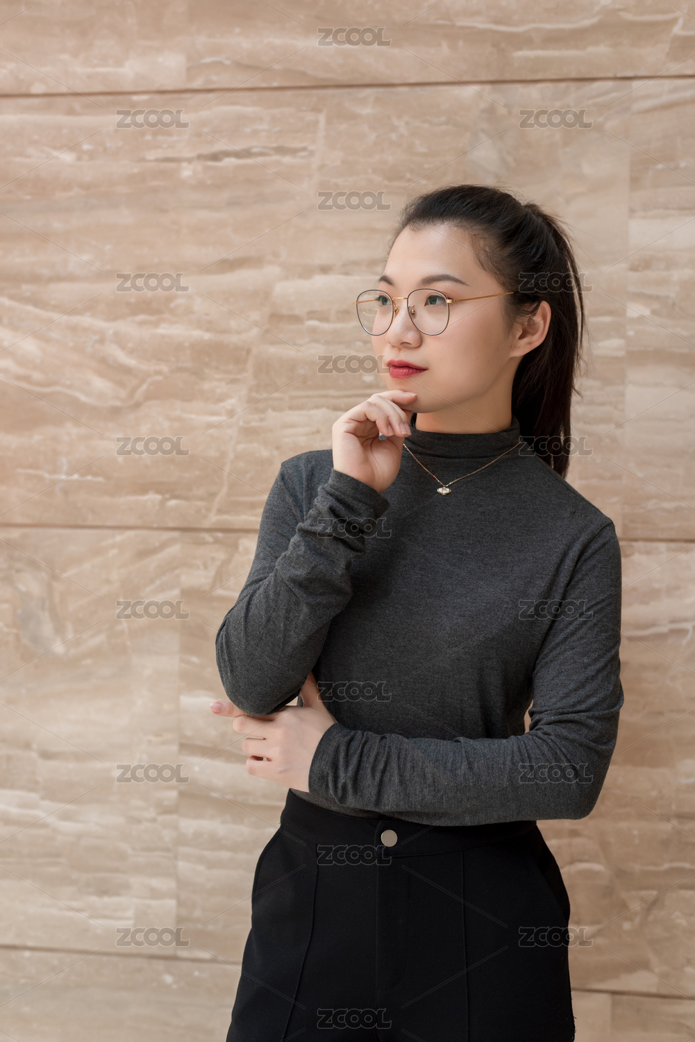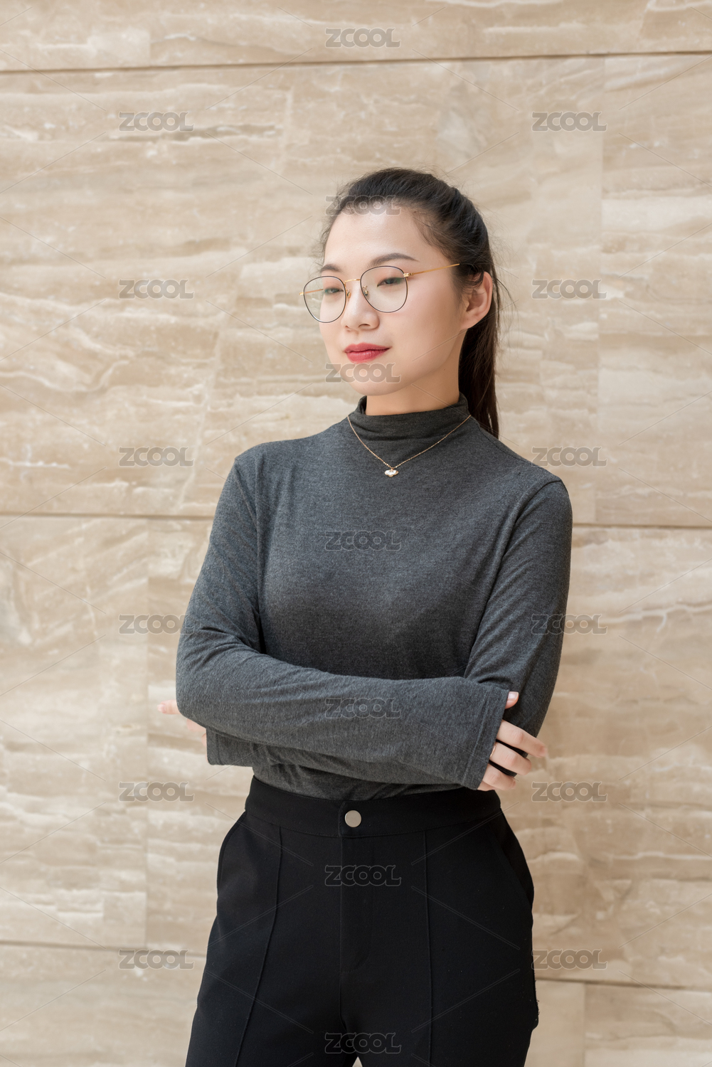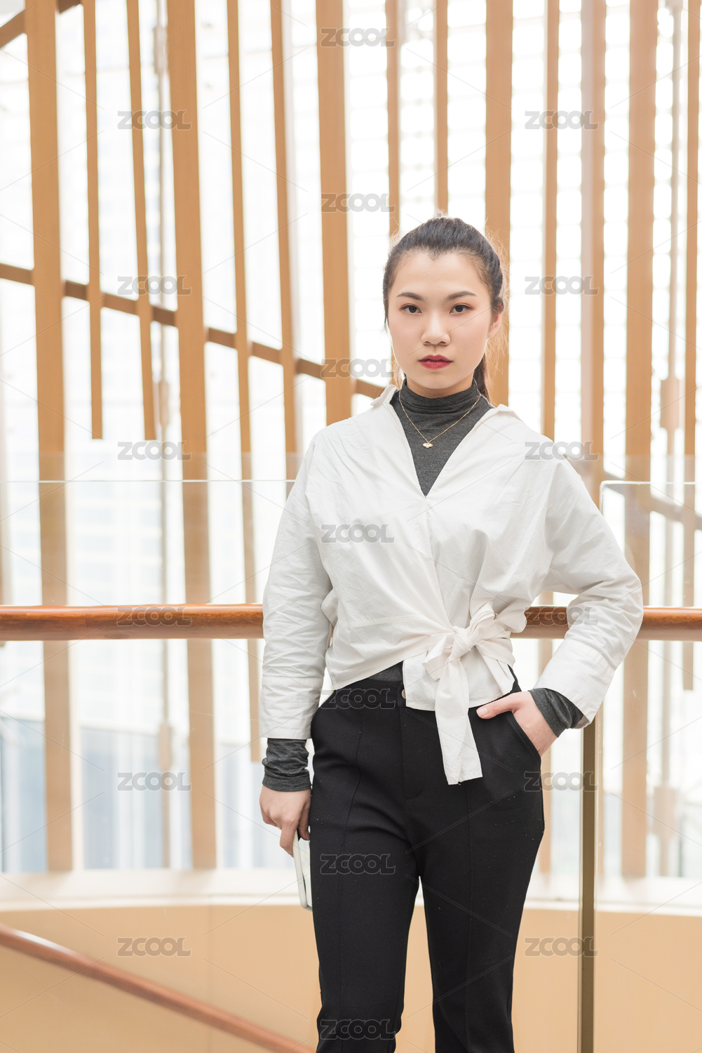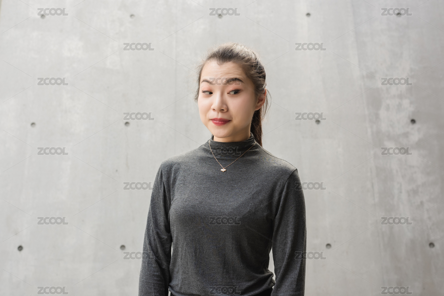 年輕女生站立著的正臉面部表情