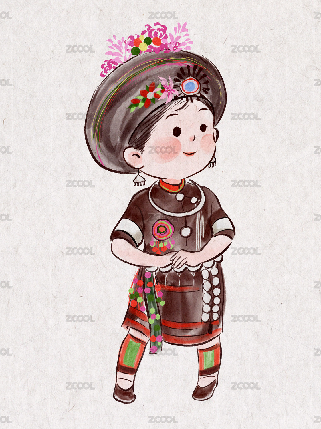 國(guó)潮卡通五十六個(gè)民族阿昌族