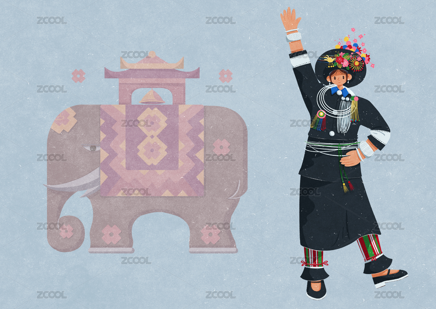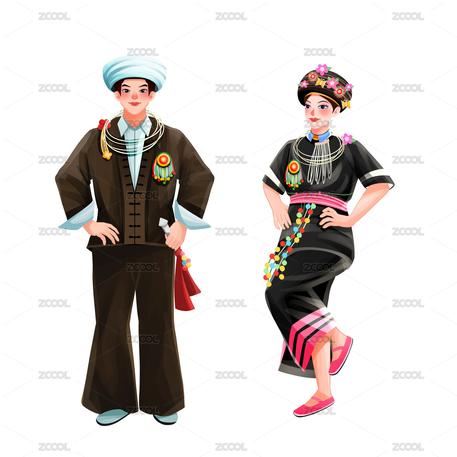 五十六個(gè)民族之阿昌族少年少女插畫(huà)元素