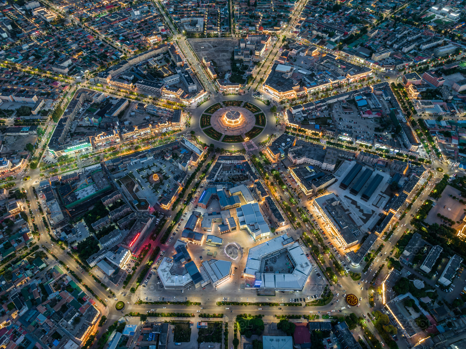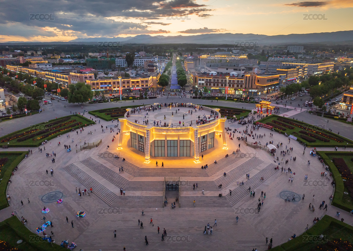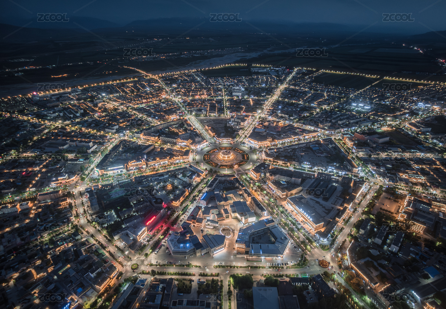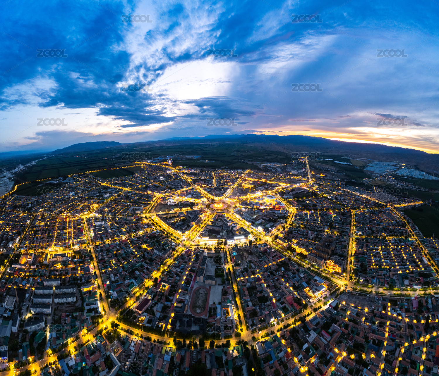 中國新疆伊犁特克斯城市航拍八卦城夜景風(fēng)光
