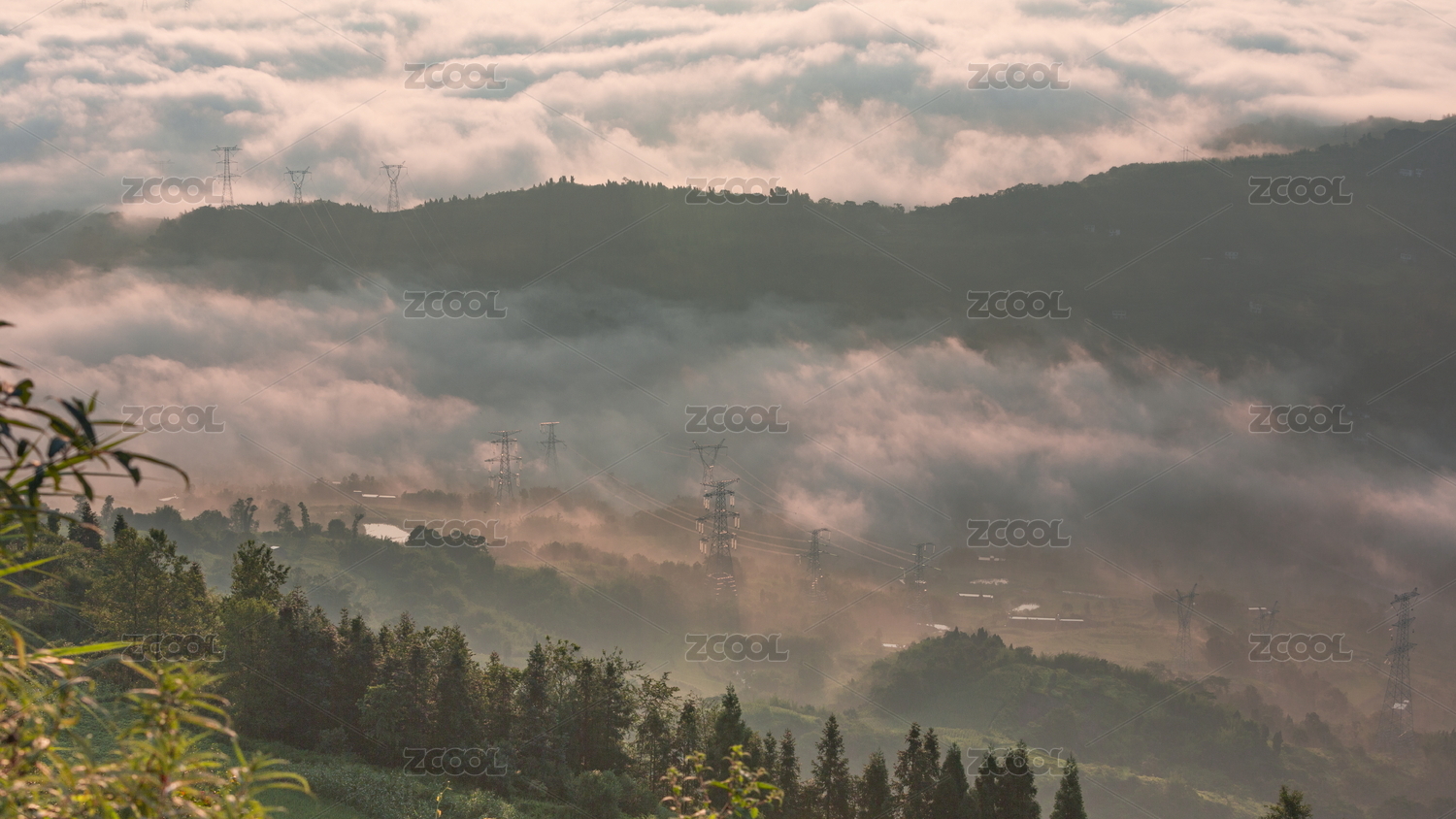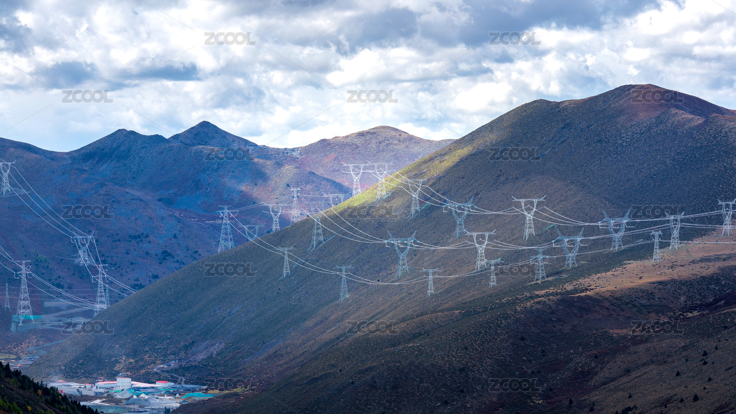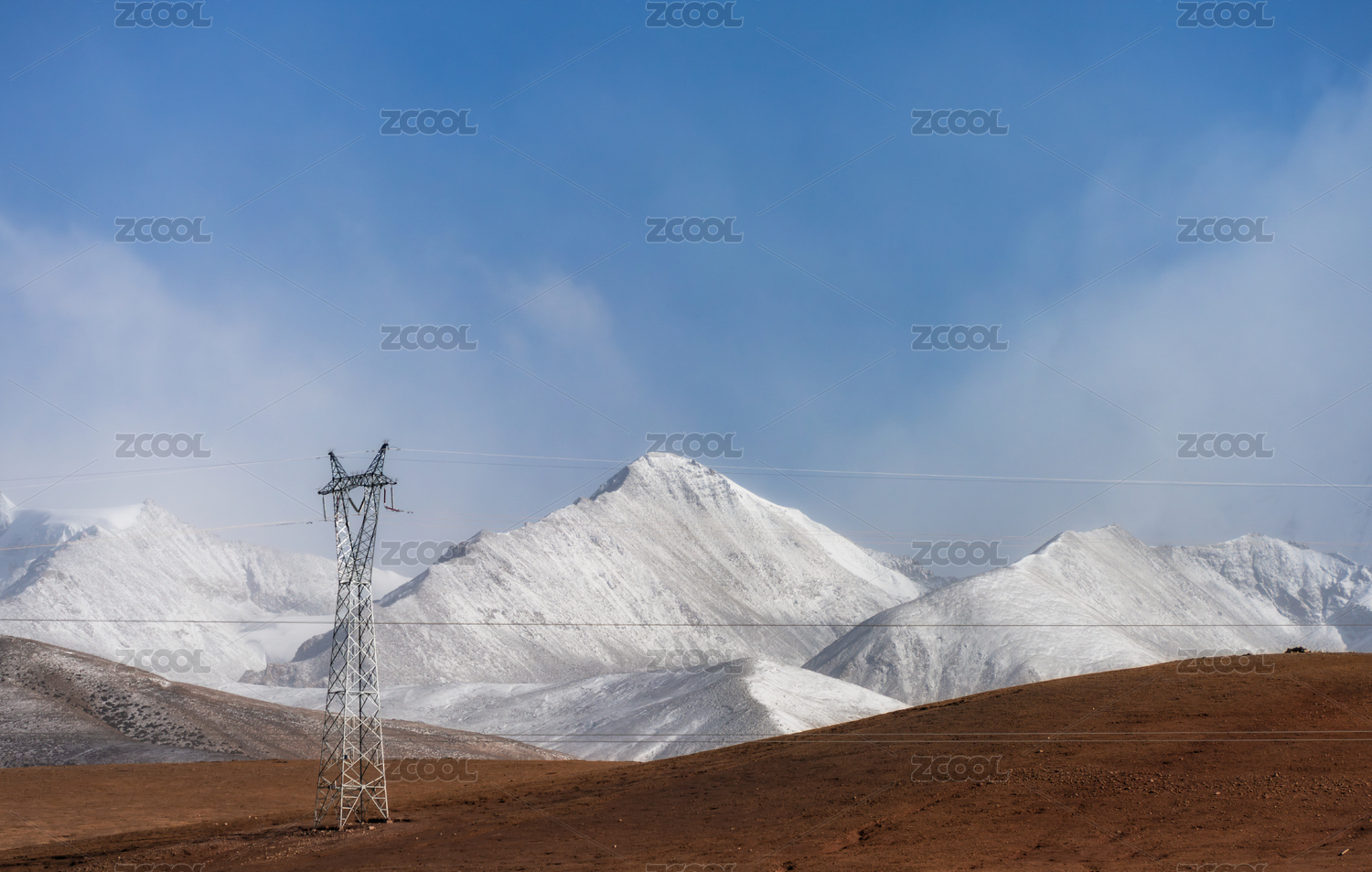 中國(guó)西藏那曲雪山下的高壓電網(wǎng)鐵塔
