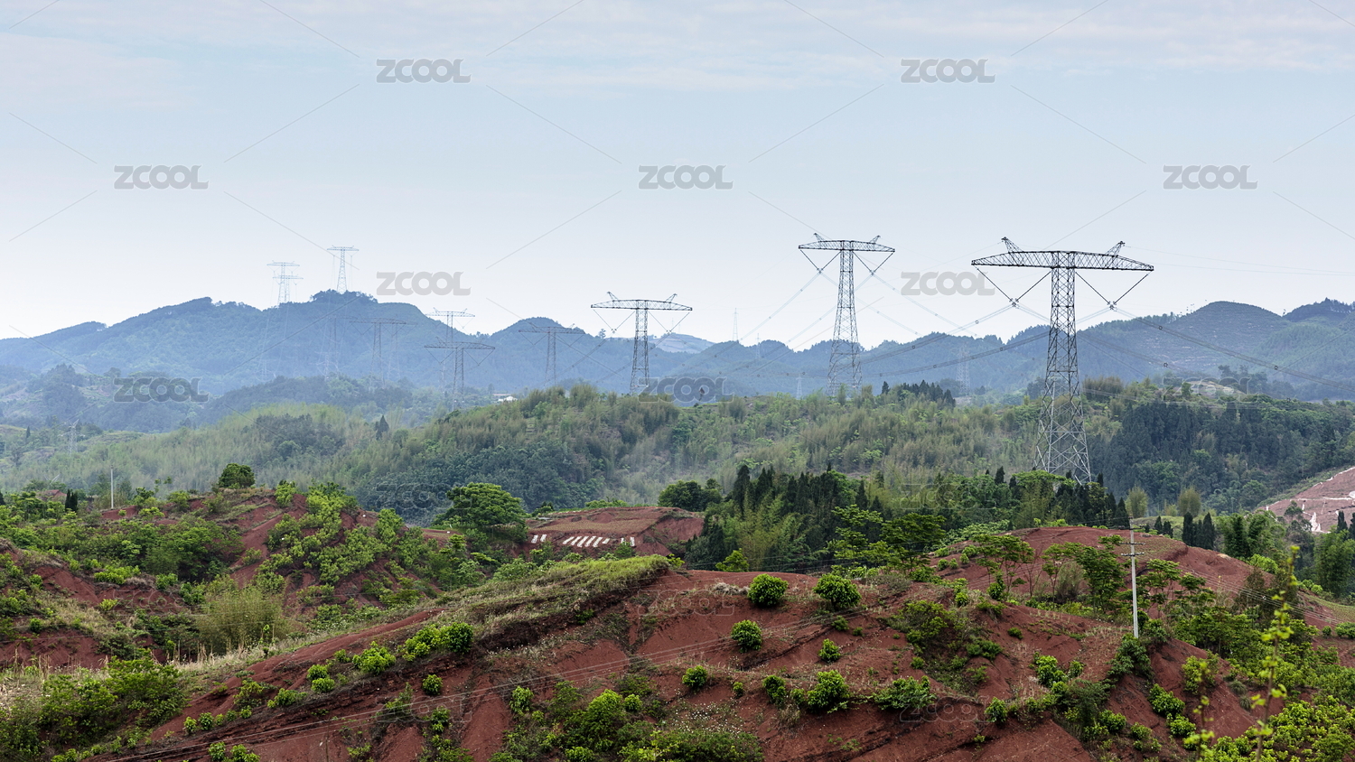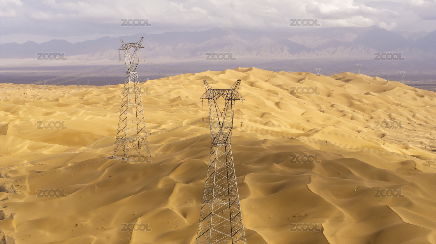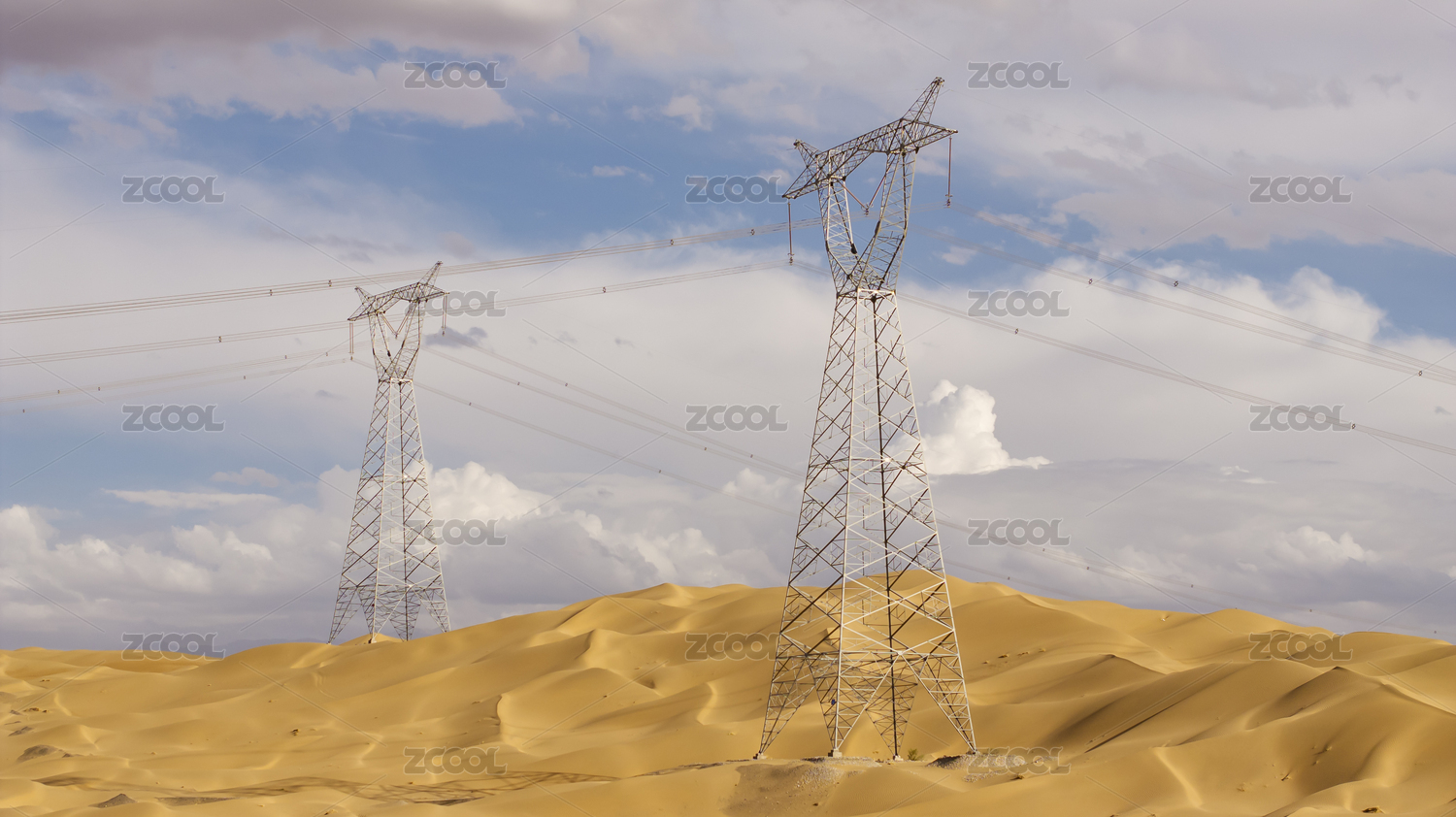 沙漠里的特高壓電力電網(wǎng)電塔建設(shè)西電東送