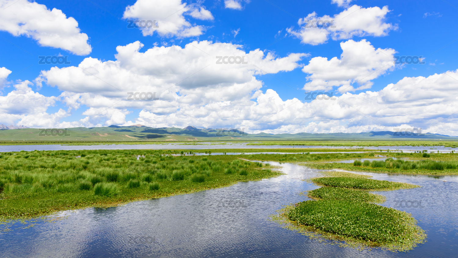 甘肅省甘南藏族自治州若爾蓋草原花湖的藍天白云湖光山色