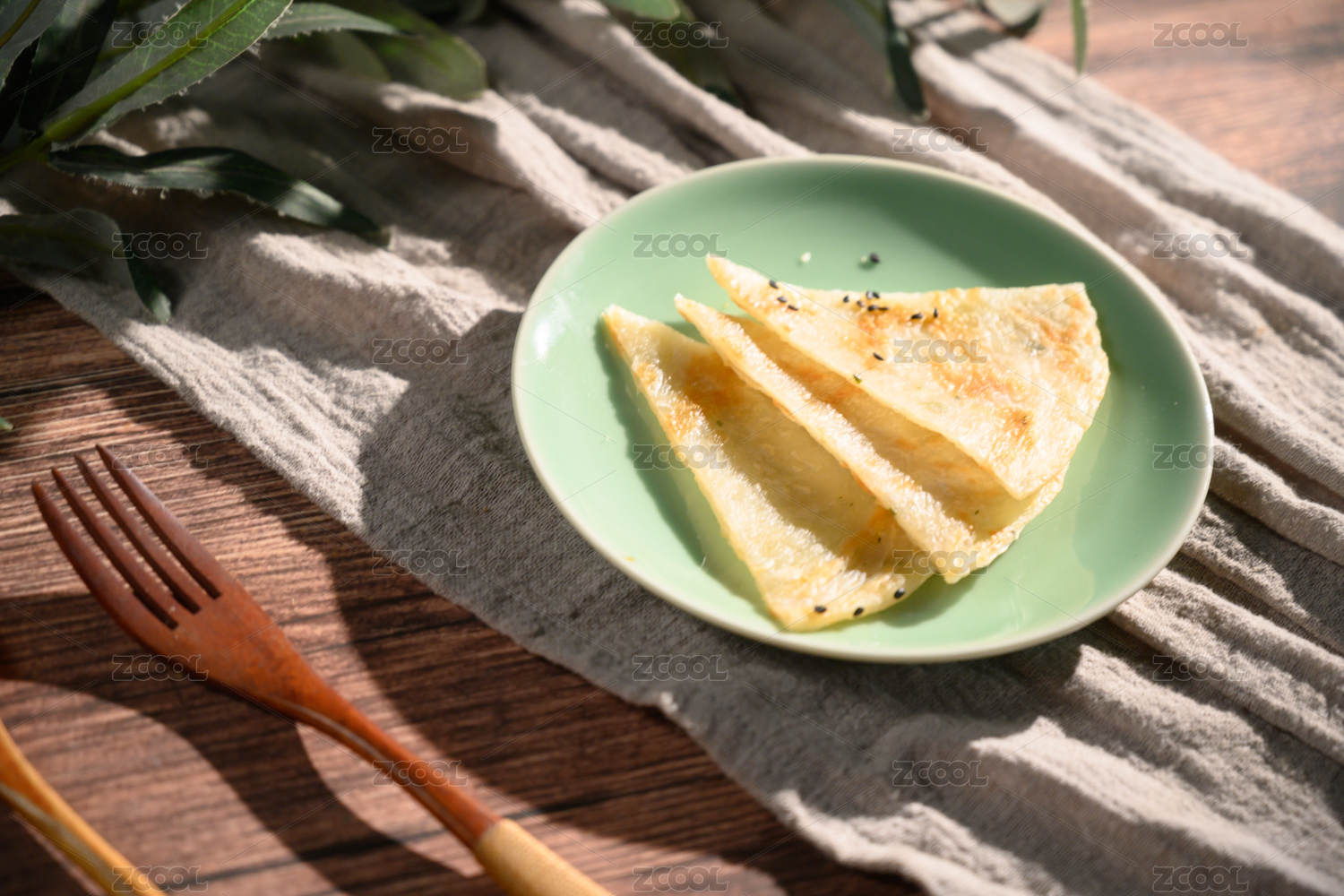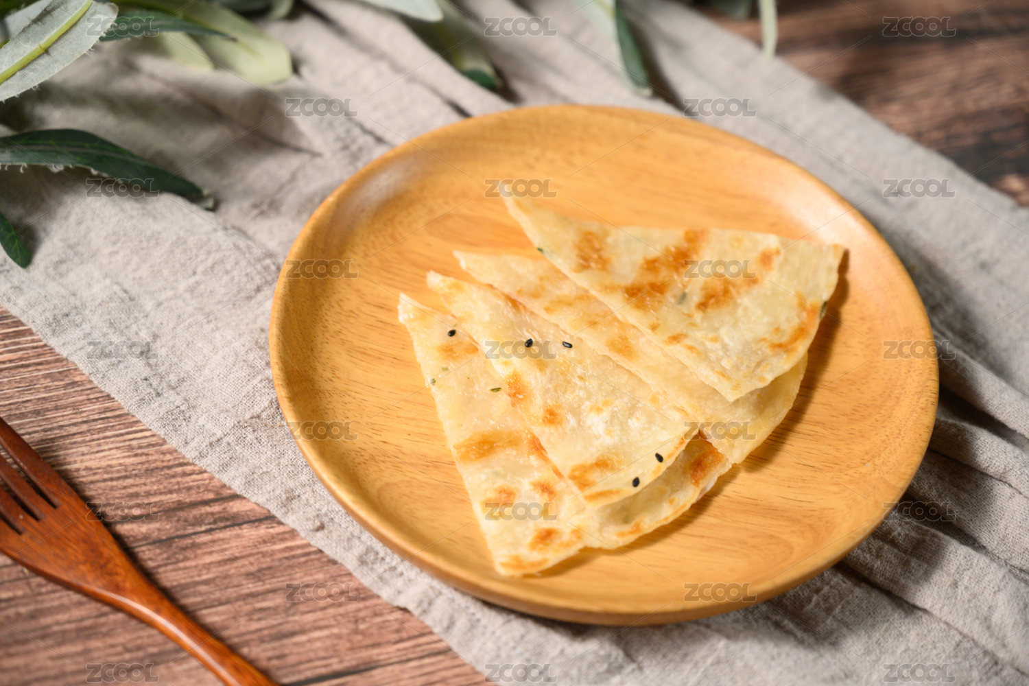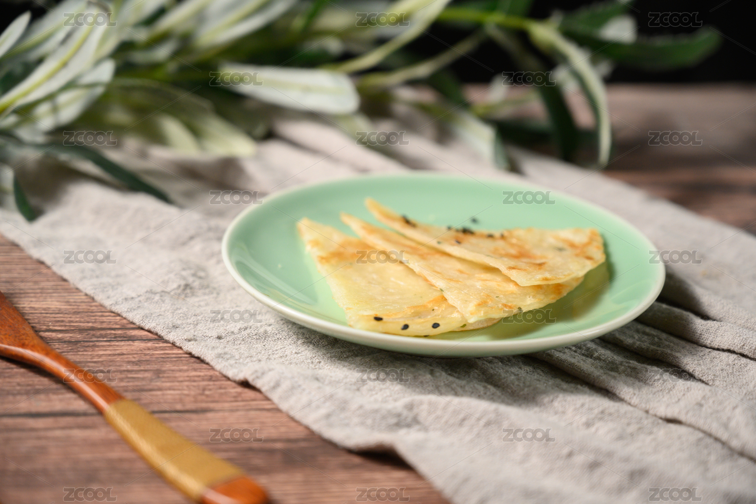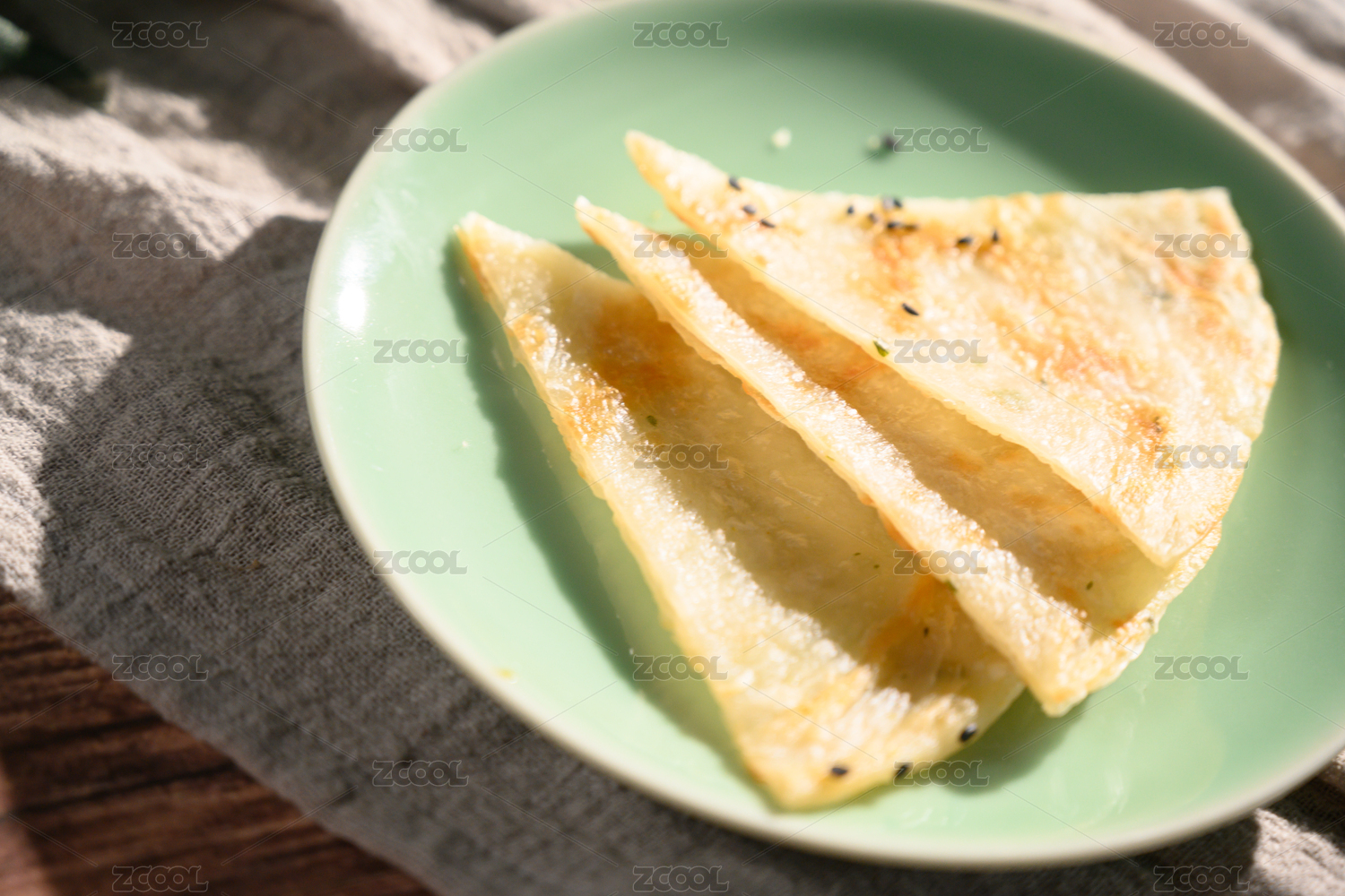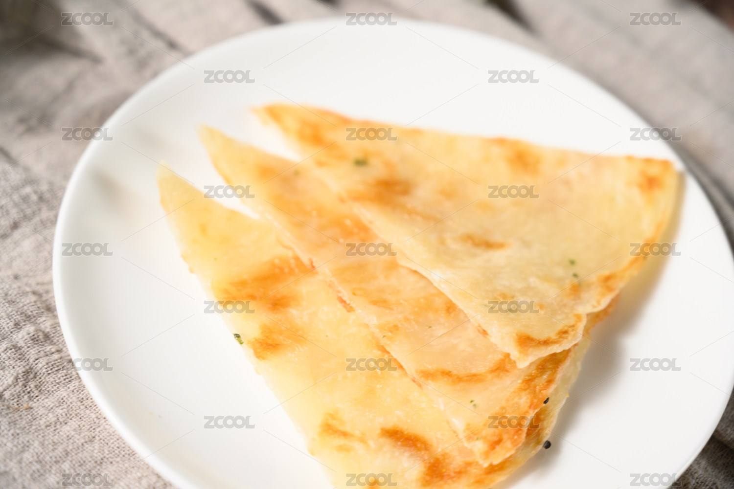棕色背景下白盤中的芝麻薄餅