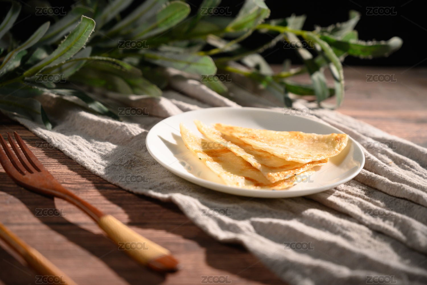 桌面上的盤子里的美味可口的煎薄餅