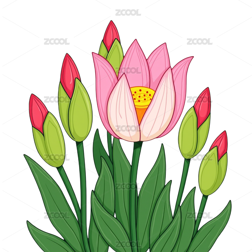 盛開的蓮花與花苞卡通動漫風(fēng)格插畫元素