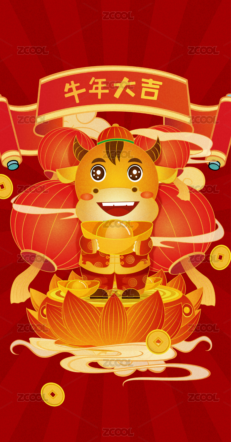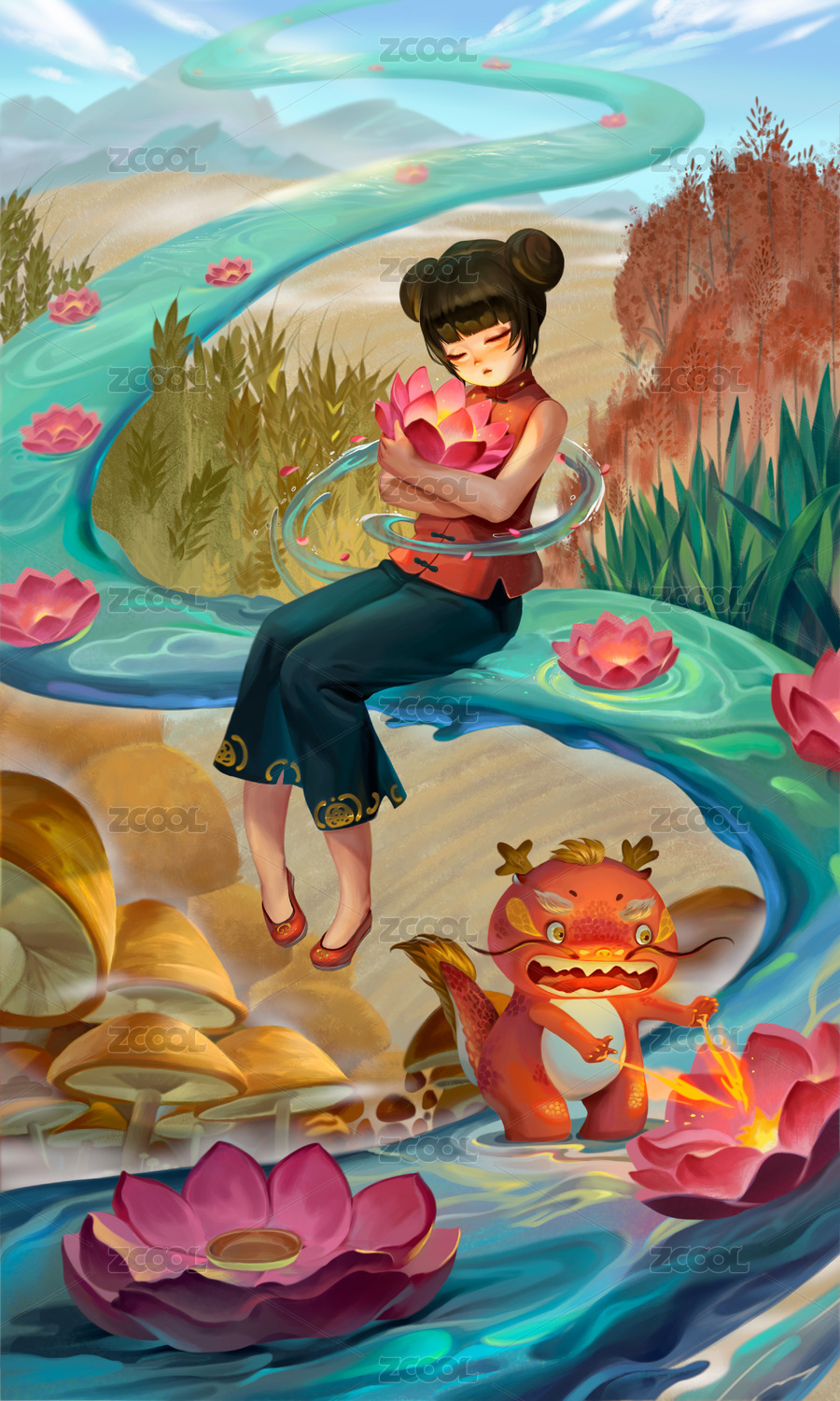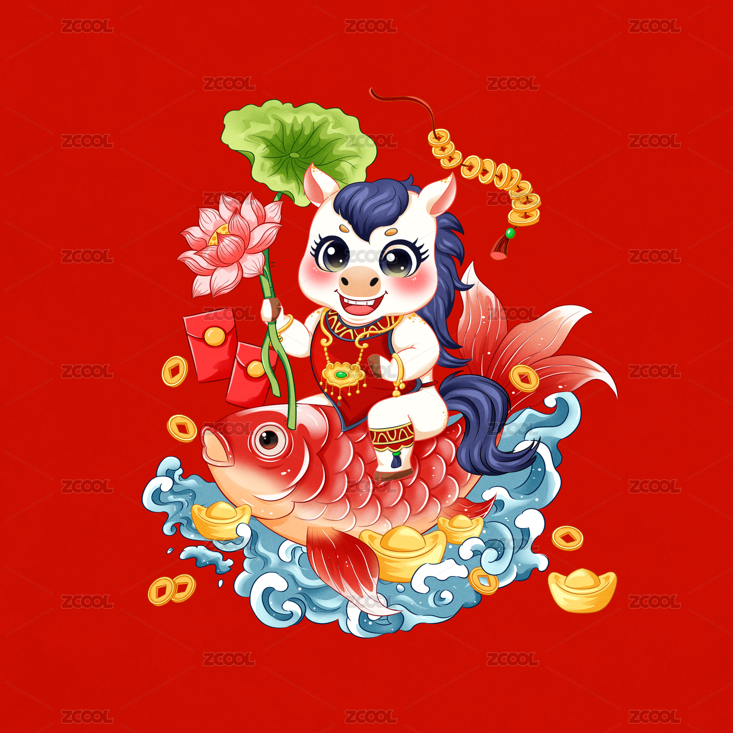 原創(chuàng)手繪卡通紅色喜慶蓮花荷花國潮元素
