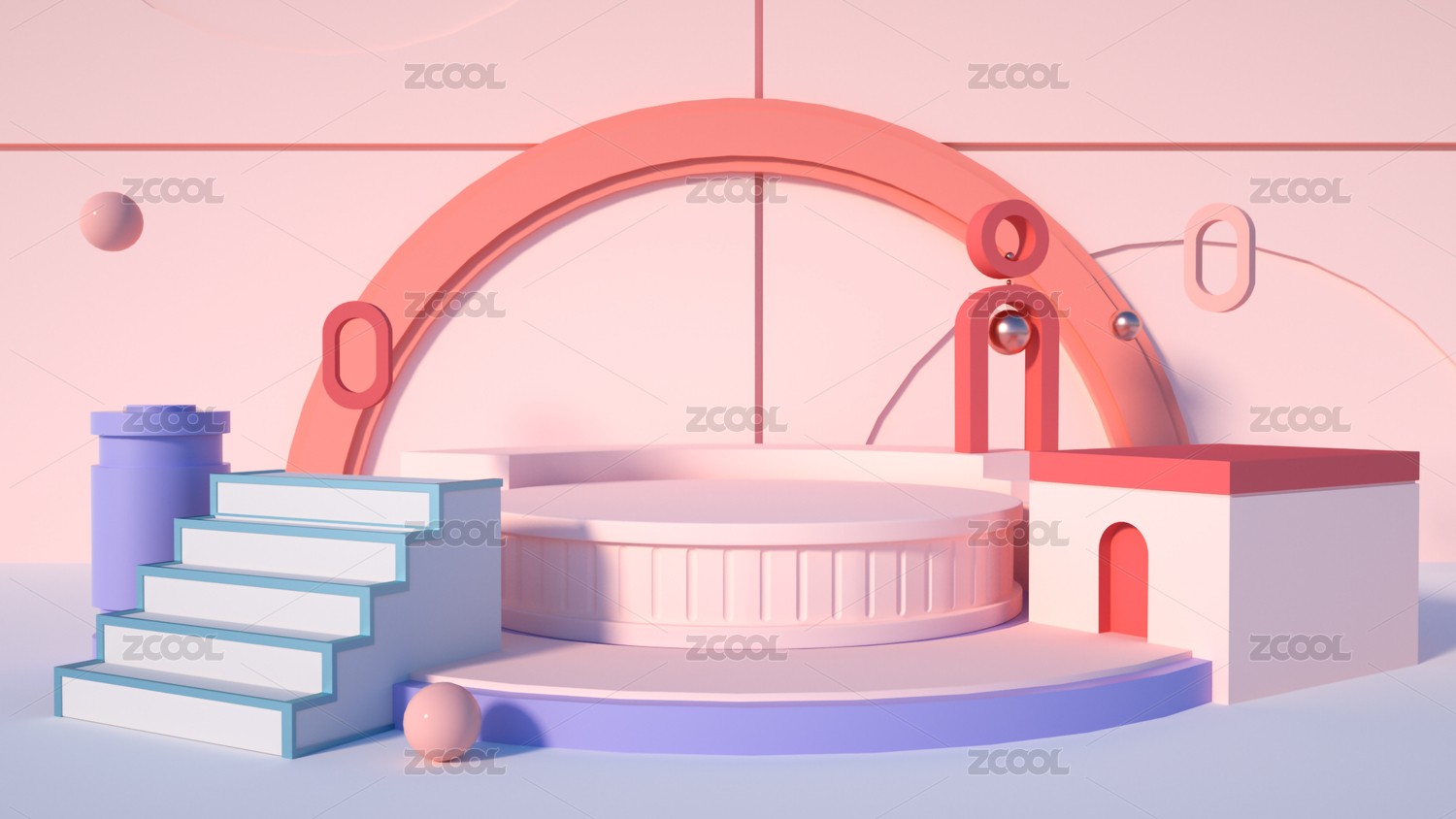 粉紅展臺無人場景