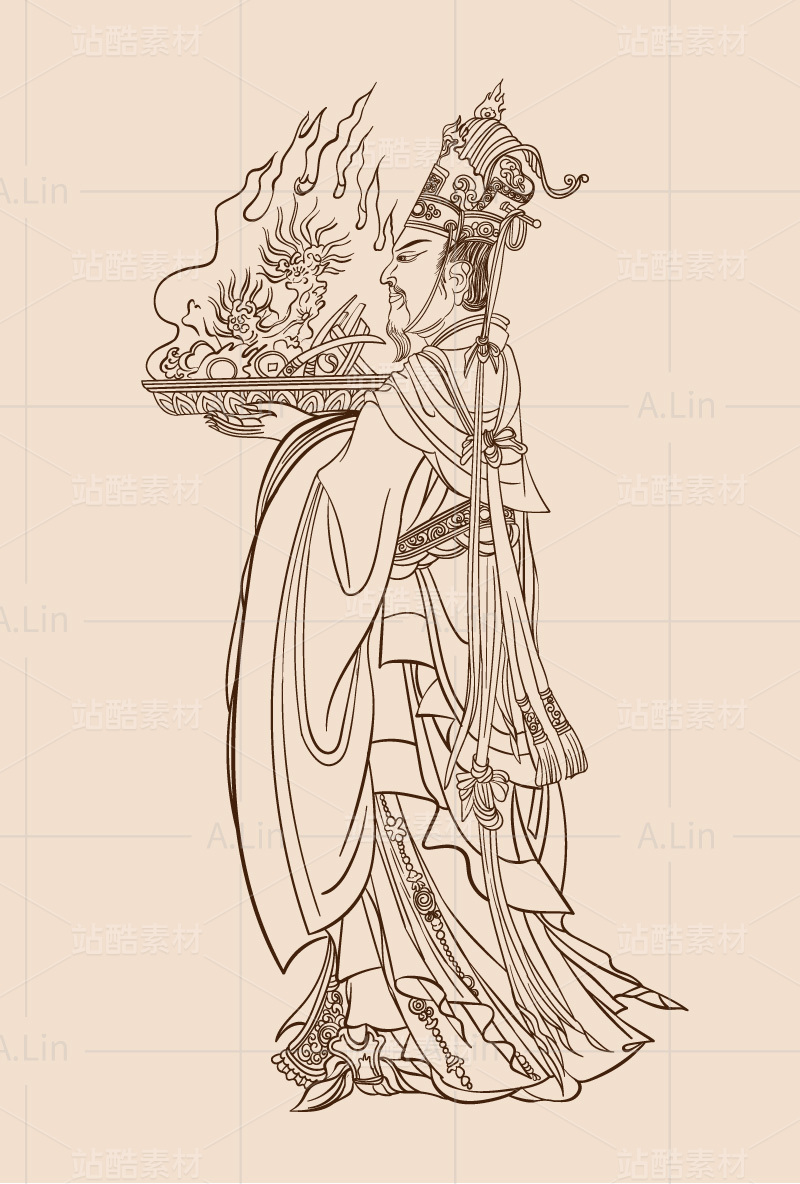 敦煌壁畫白描線稿 帝釋天雙手捧盤