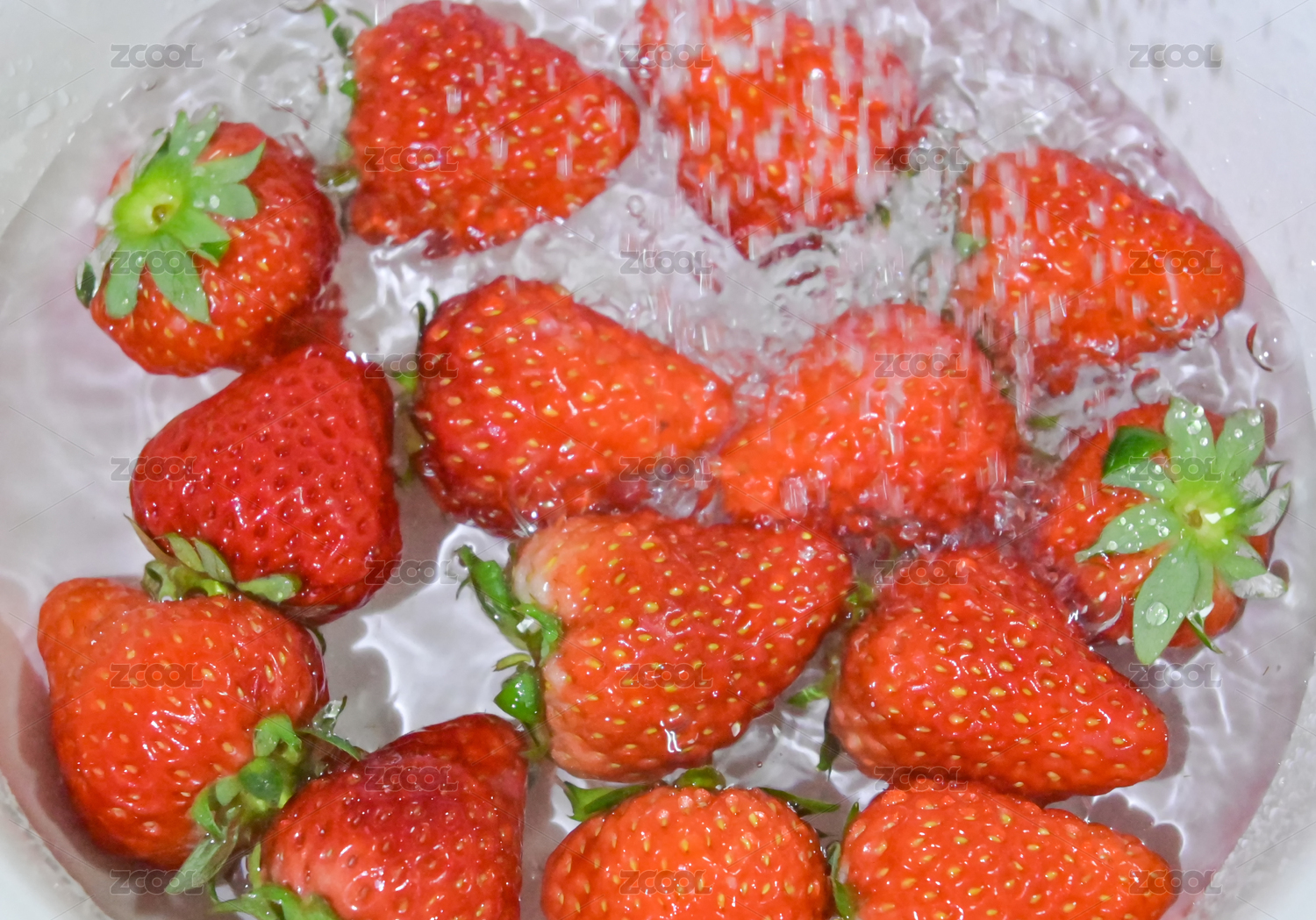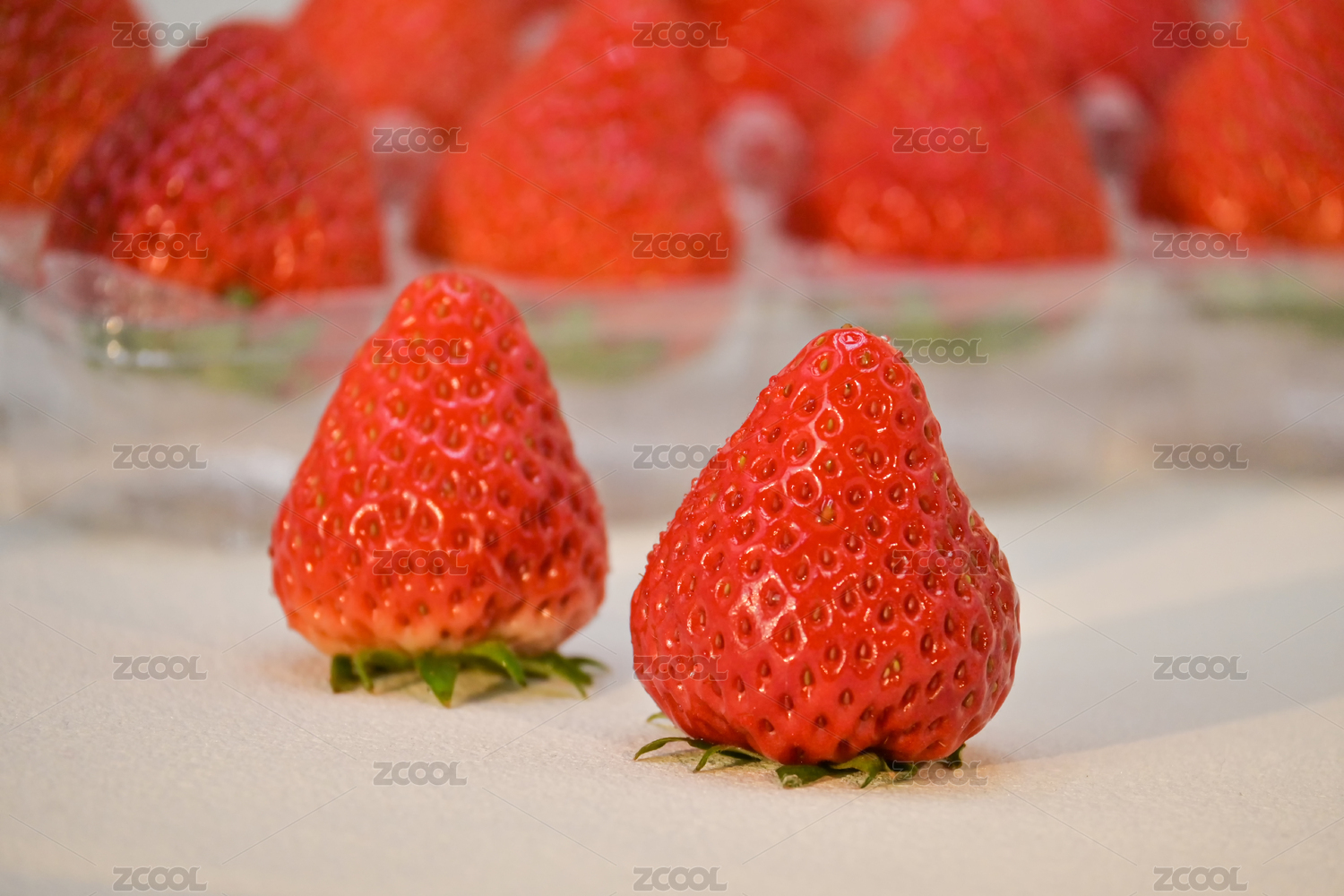 白石底上放著一個(gè)丹東牛奶草莓和半邊草莓