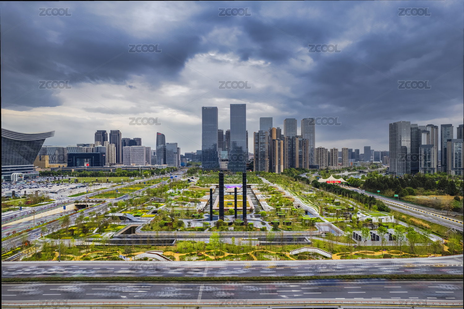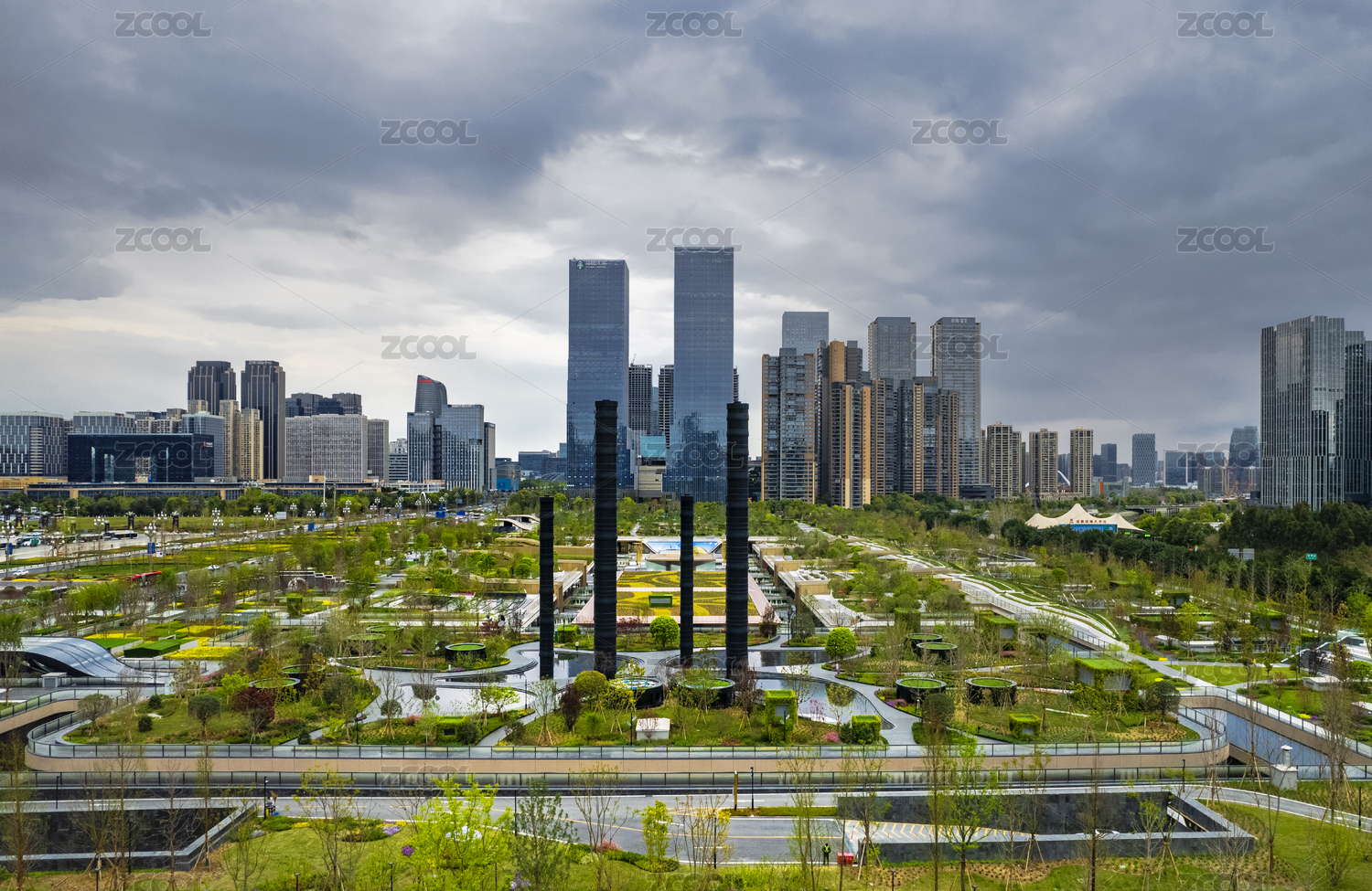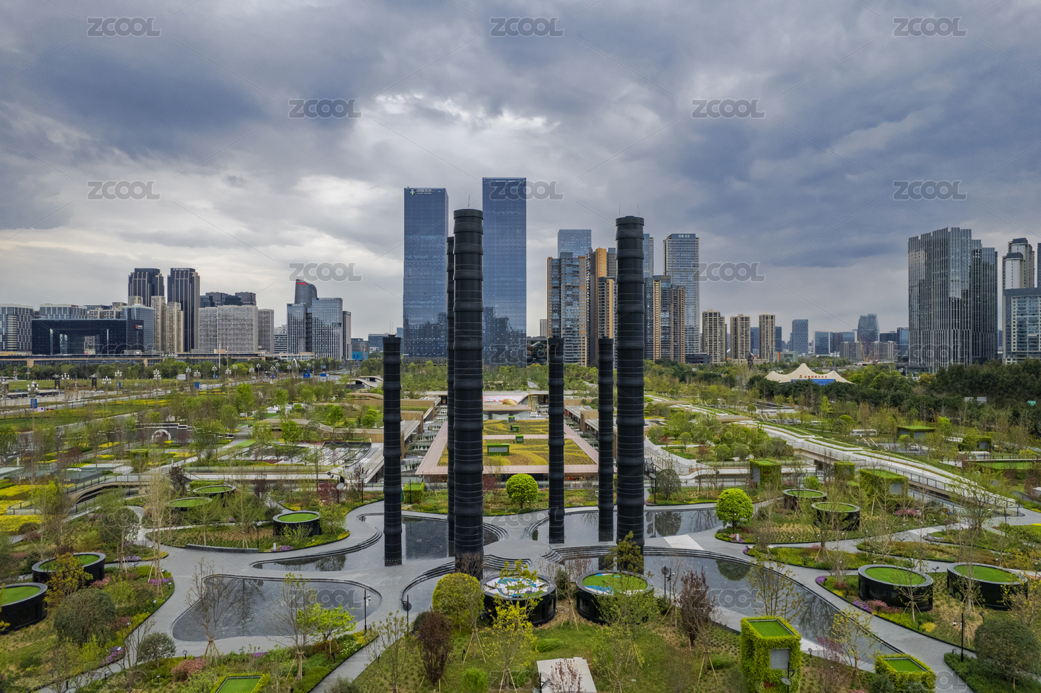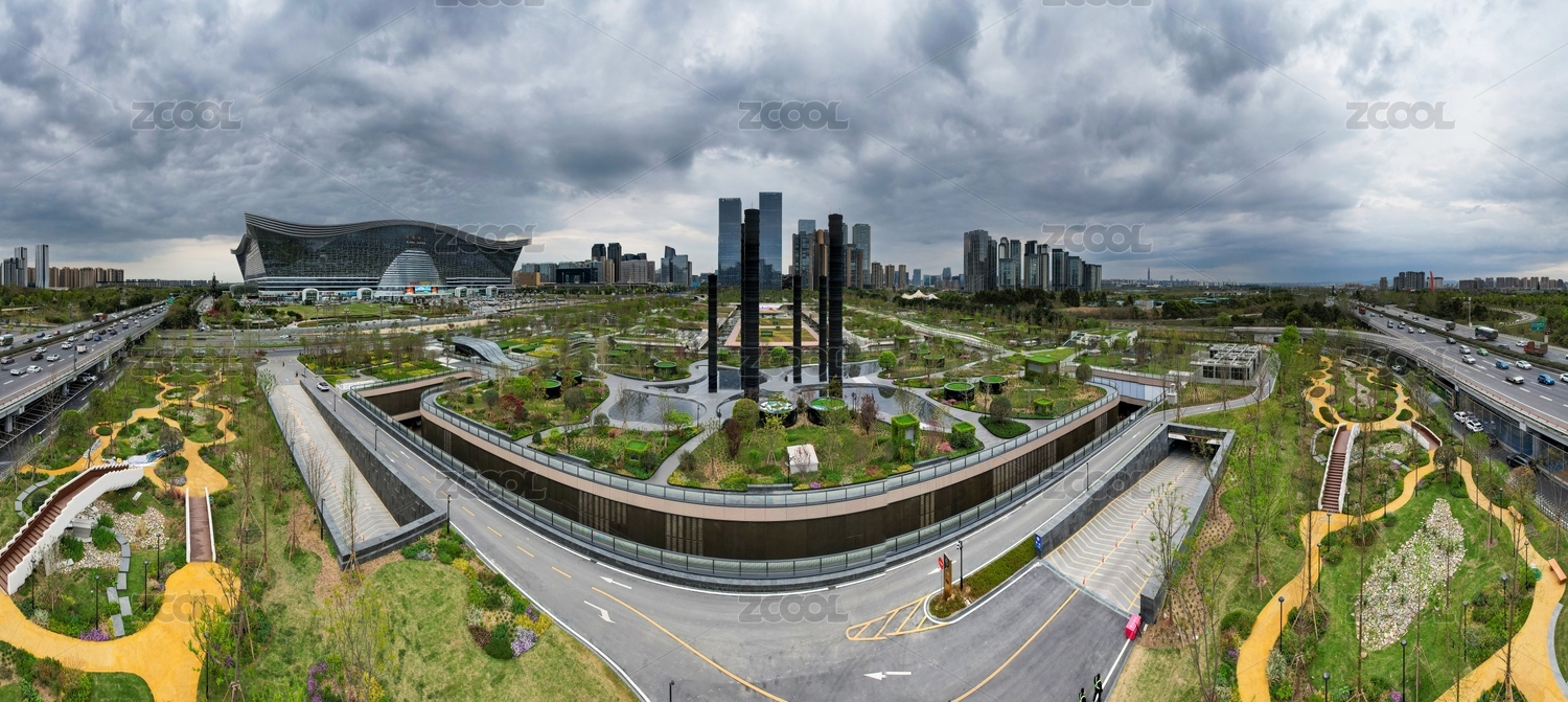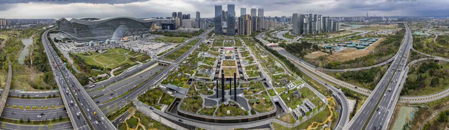 成都高新區(qū)環(huán)球中心成都SKP桂溪公園航拍