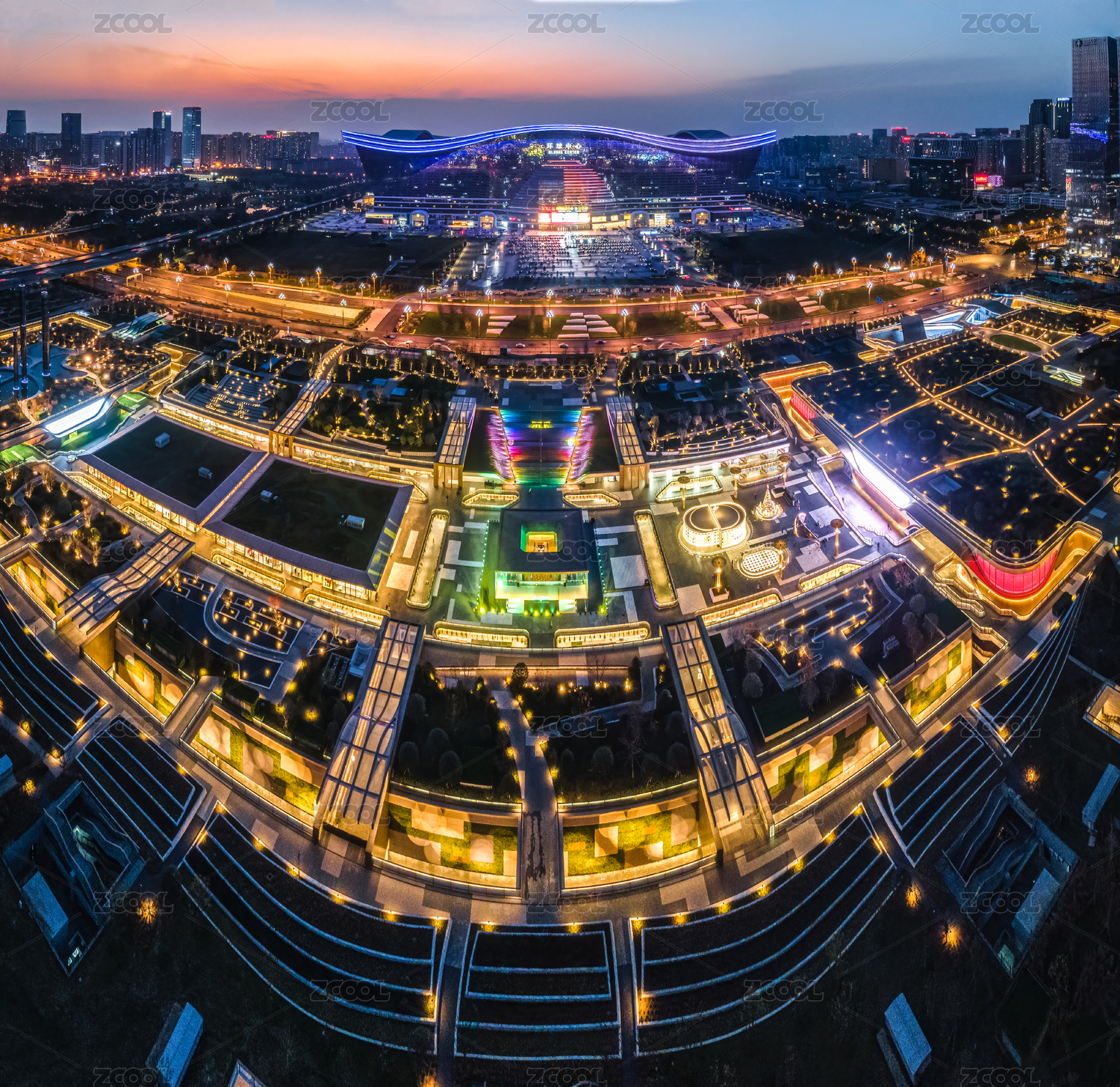 中國成都交子公園商圈成都SKP夜景航拍圖