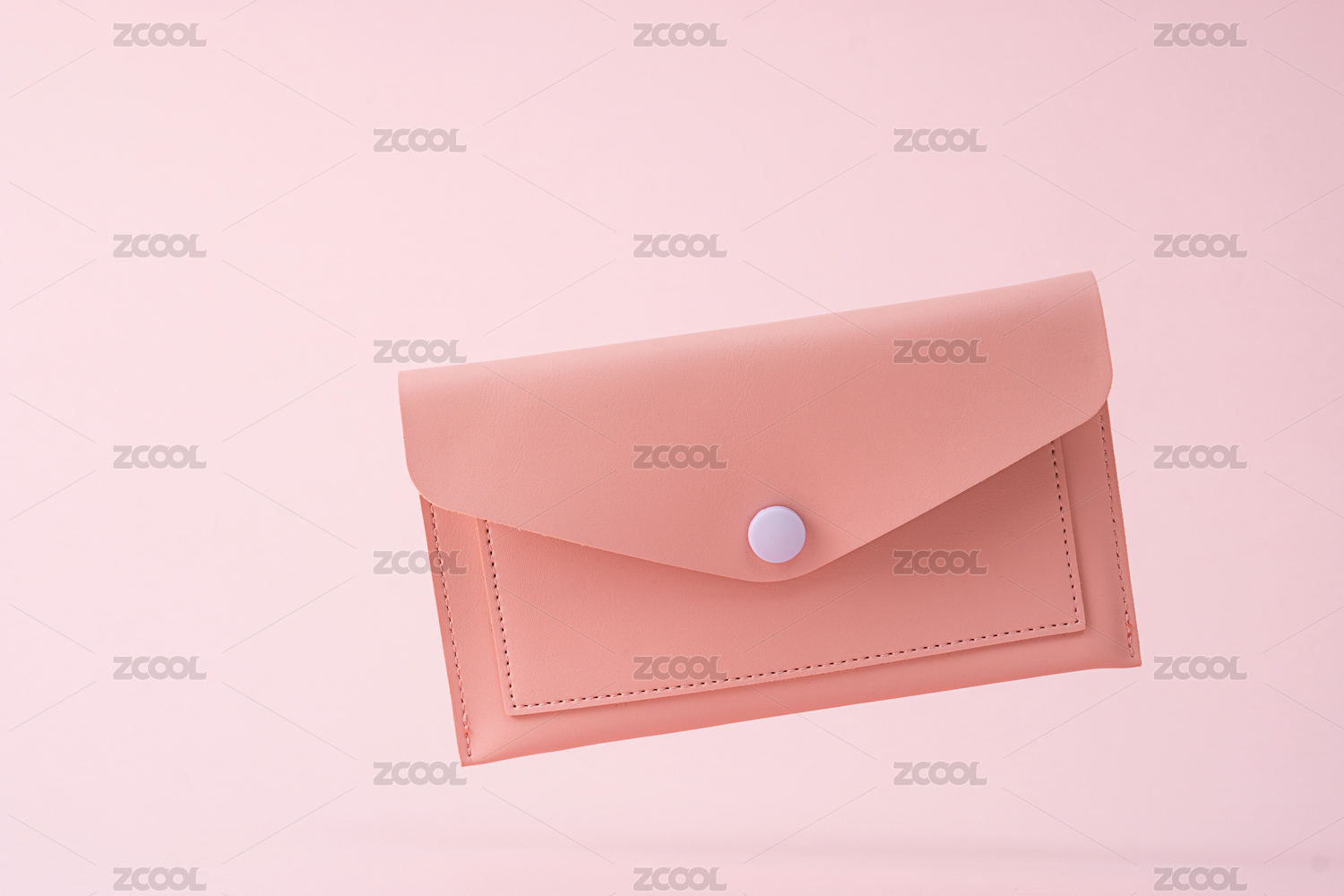 粉色背景前,掉落的粉色時尚小皮包