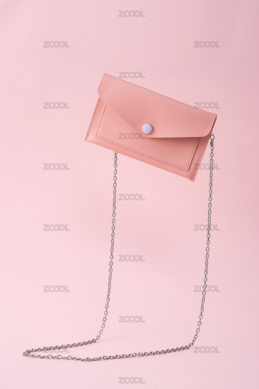 粉色背景前,掉落的粉色皮質(zhì)小挎包