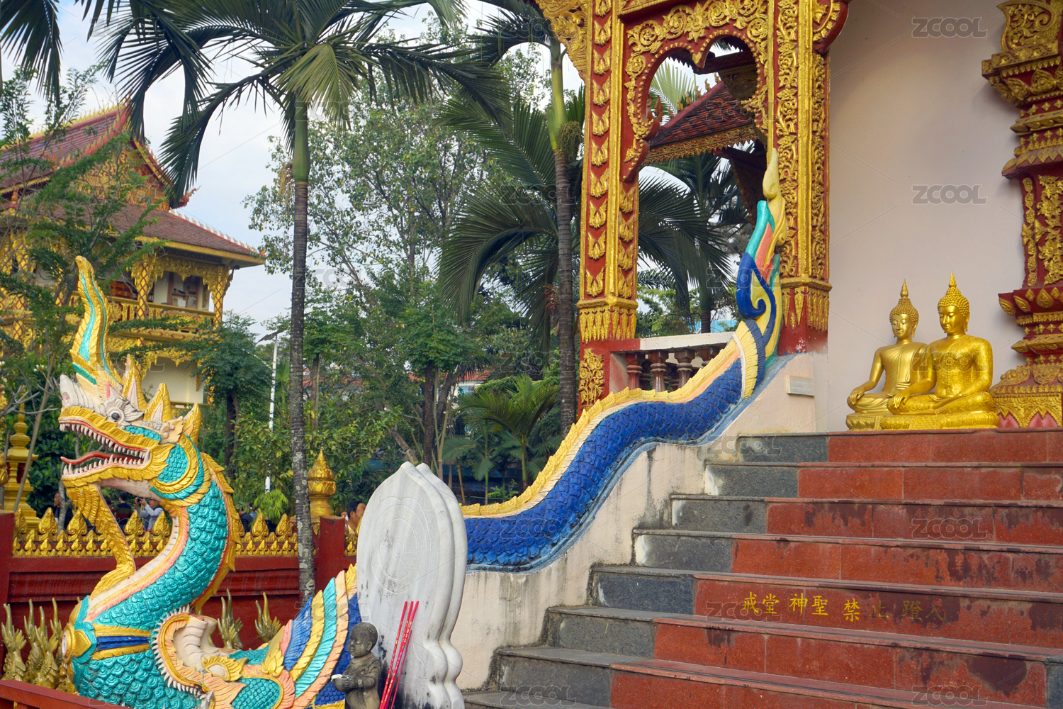 西雙版納景洪總佛寺 傣族圖騰那伽神龍雕塑