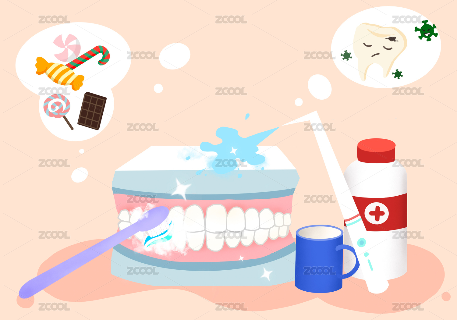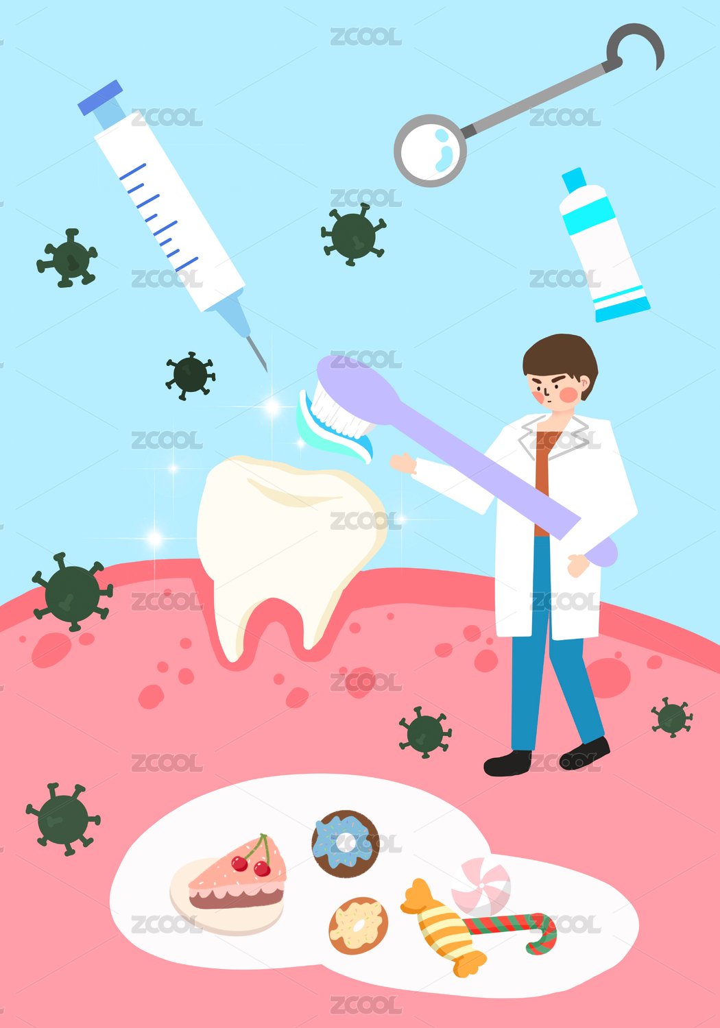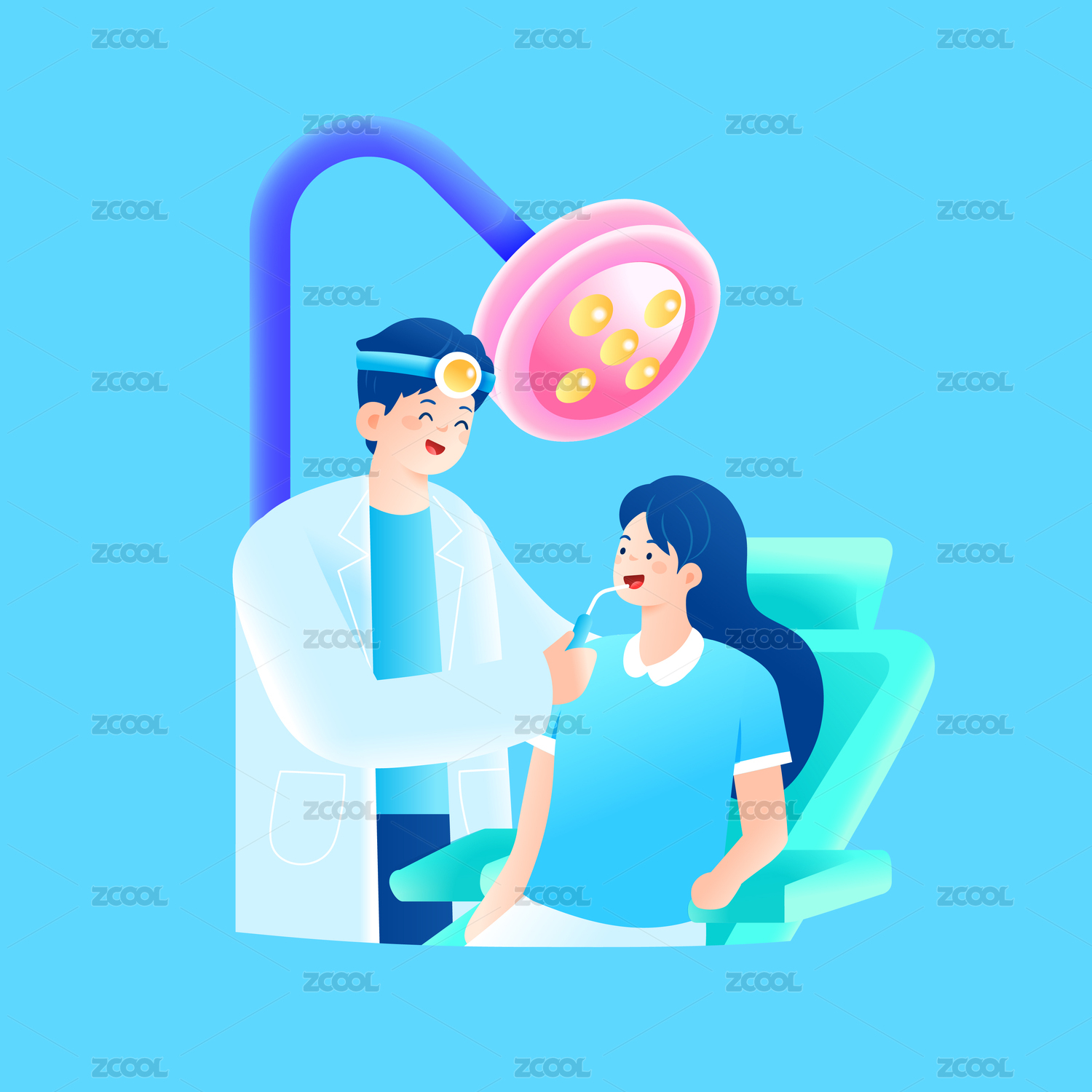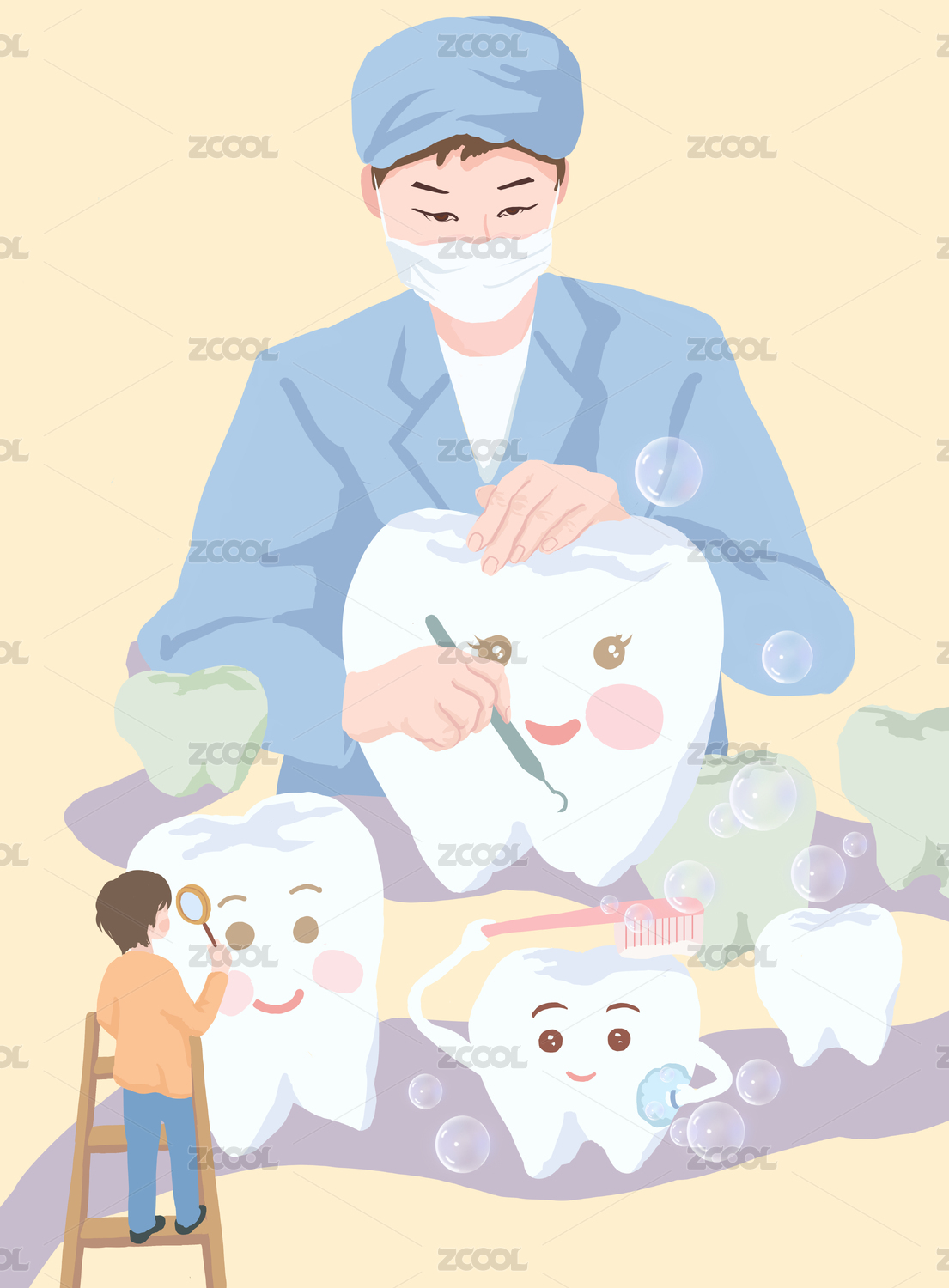 愛(ài)牙日牙醫(yī)檢查清潔牙齒手繪插畫(huà)