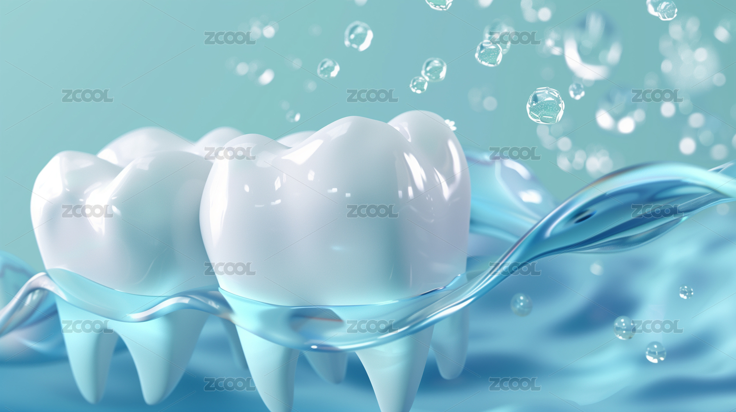 藍(lán)色背景中的兩顆3D潔白色牙齒