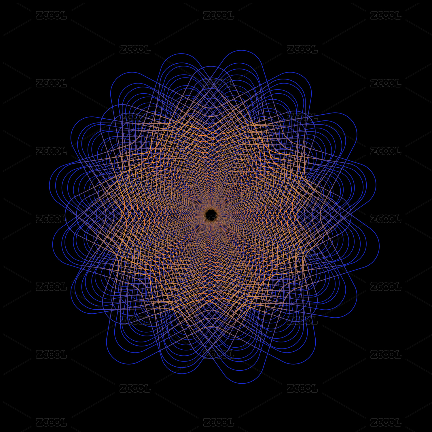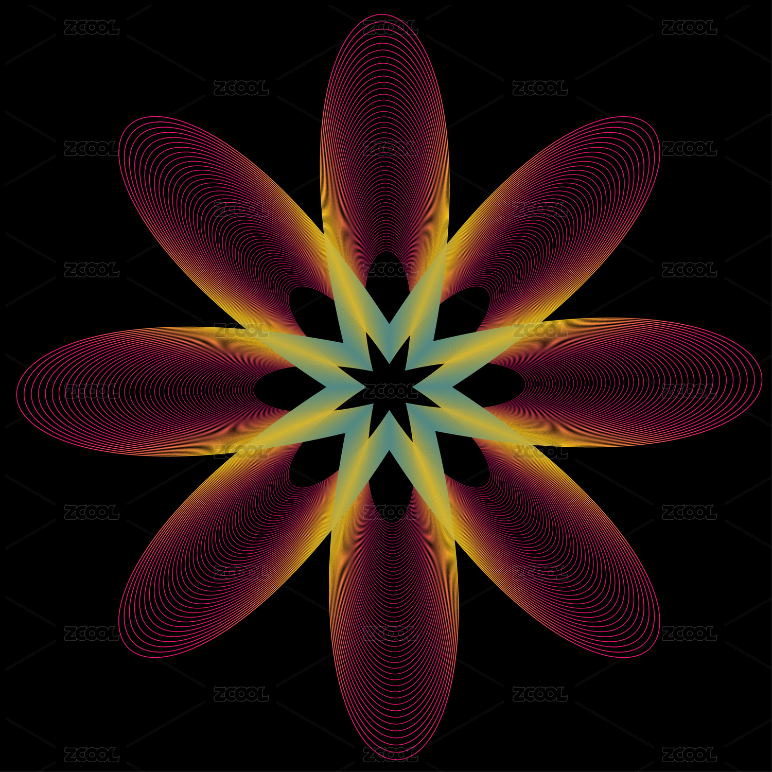 黑底漸變線條組成的花朵矢量圖