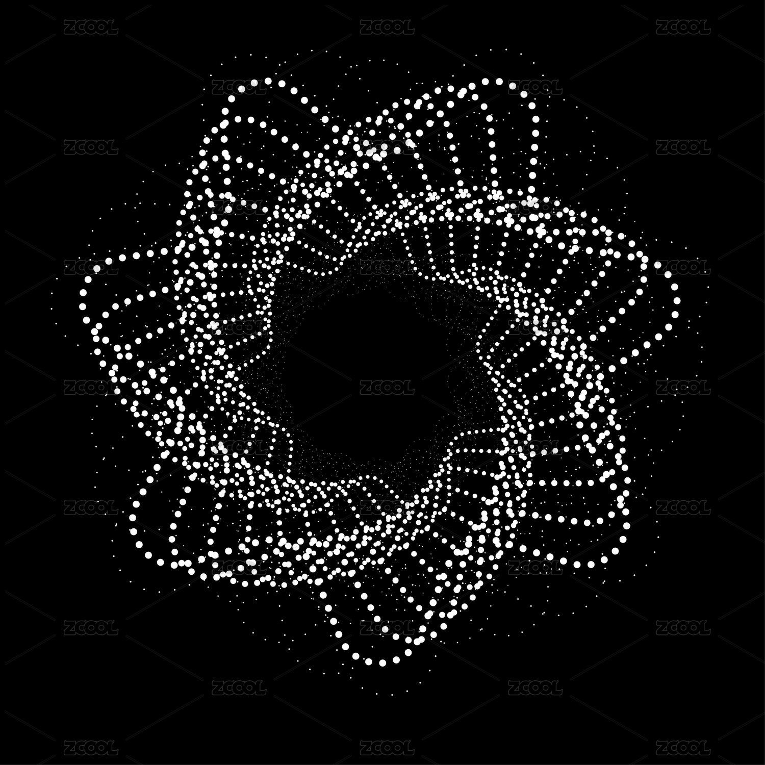 黑底白色圓點旋轉(zhuǎn)圓角星星矢量圖