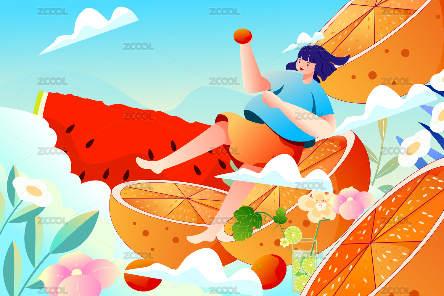 夏天節(jié)氣插畫矢量圖